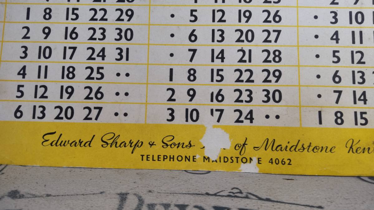 英国ヴィンテージ 1962年 Edward Sharps & Sons の両面カレンダー