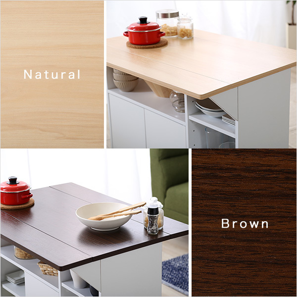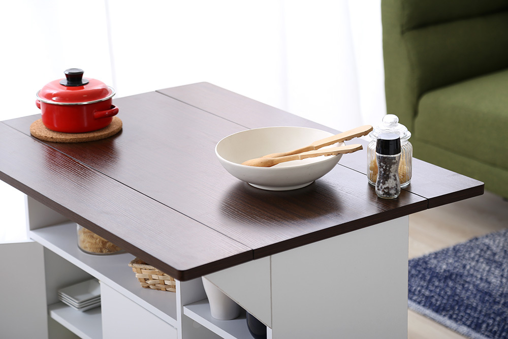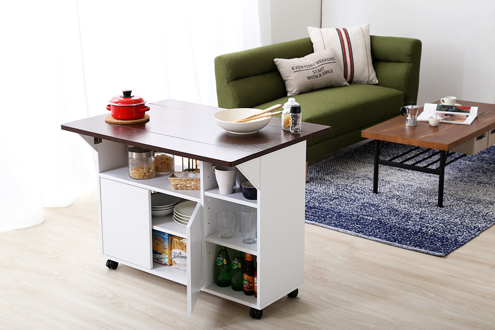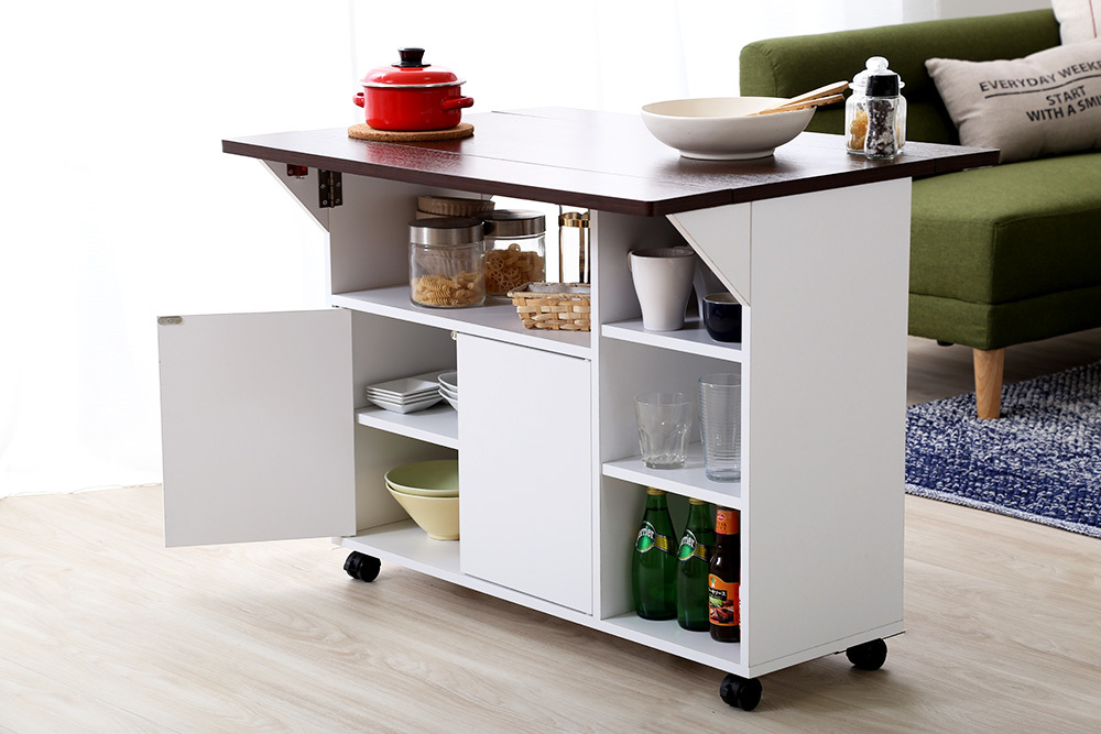 バタフライタイプのキッチンワゴン 、使い方様々でサイドテーブルやカウンターテーブルに