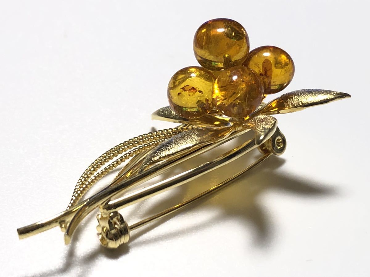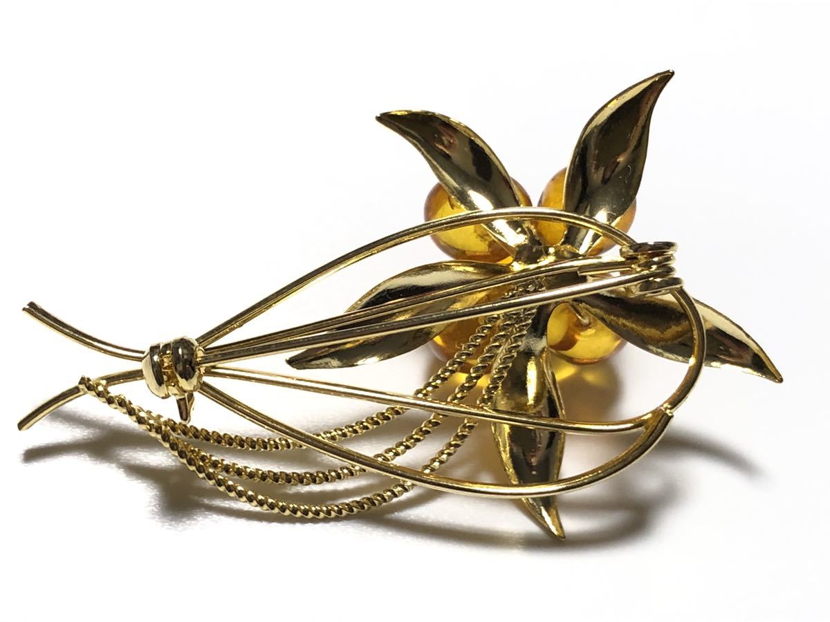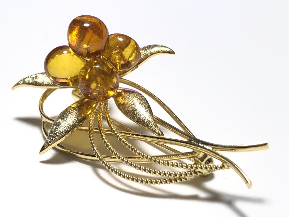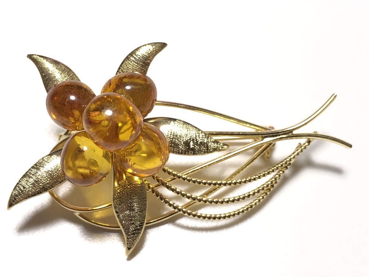 本琥珀を使用した、フラワーデザインのブローチです。美品です。