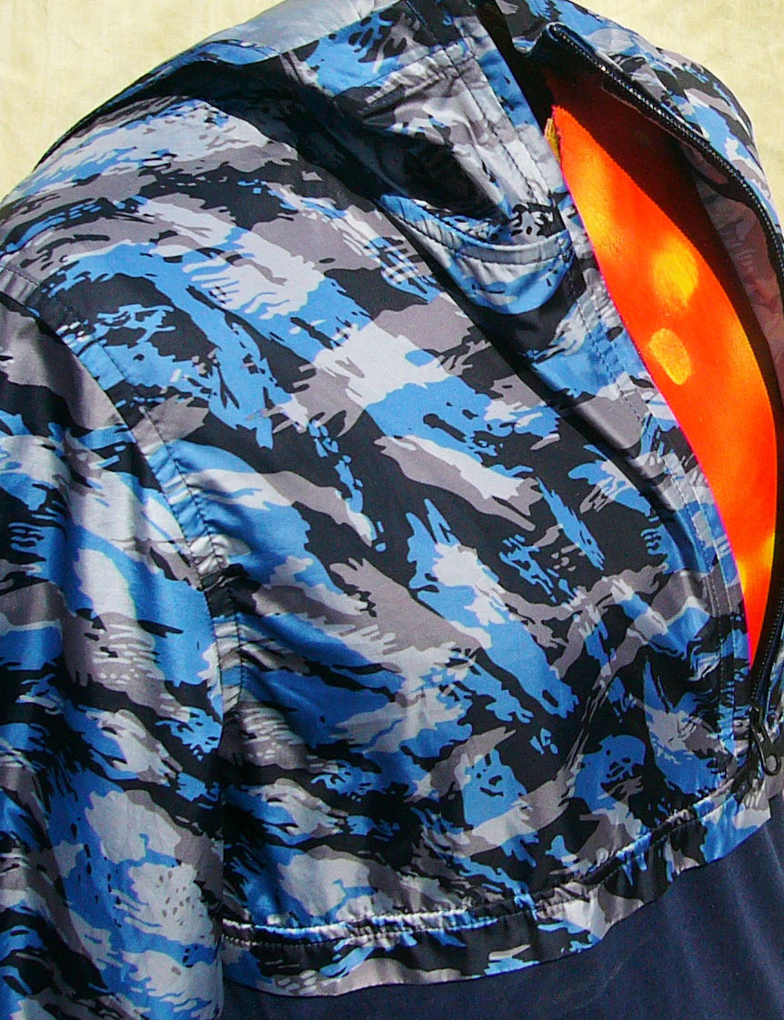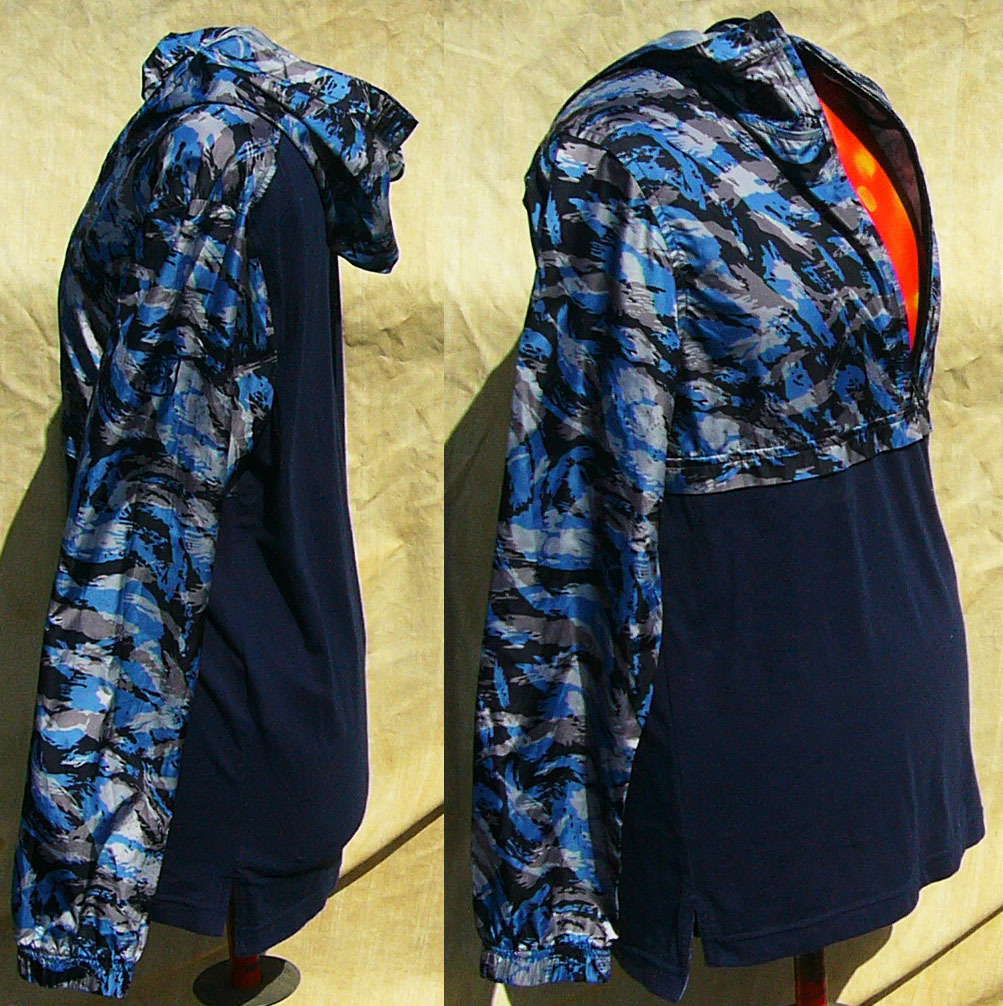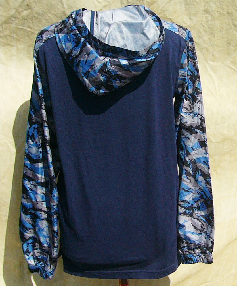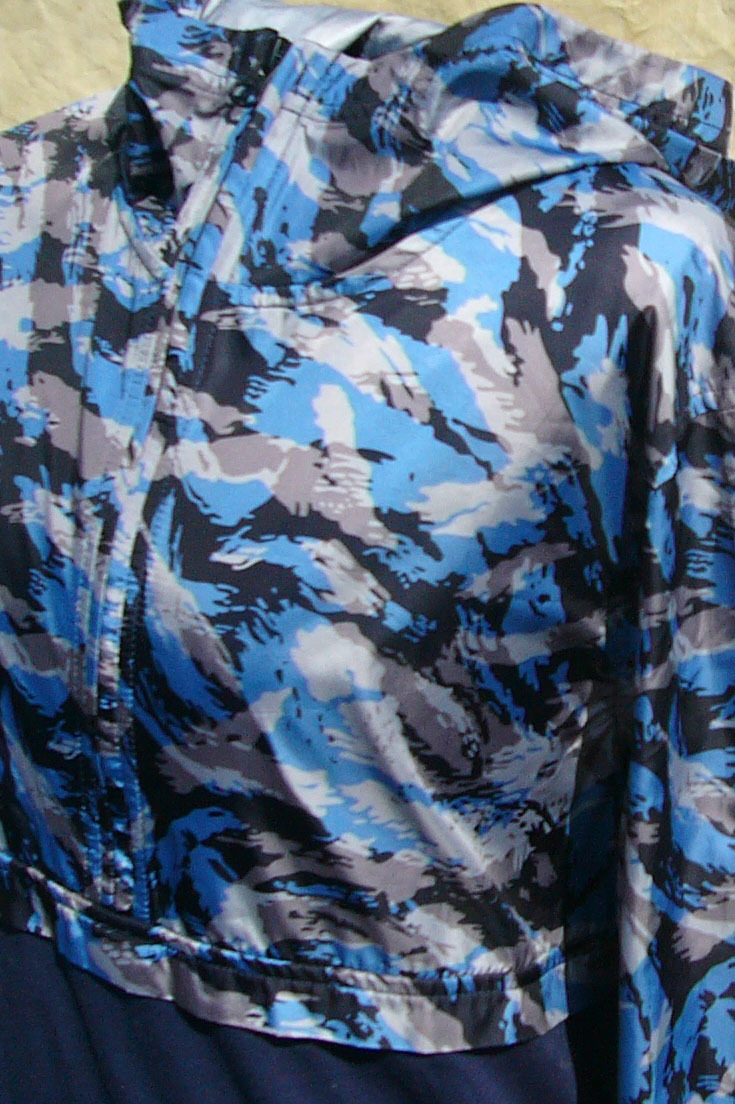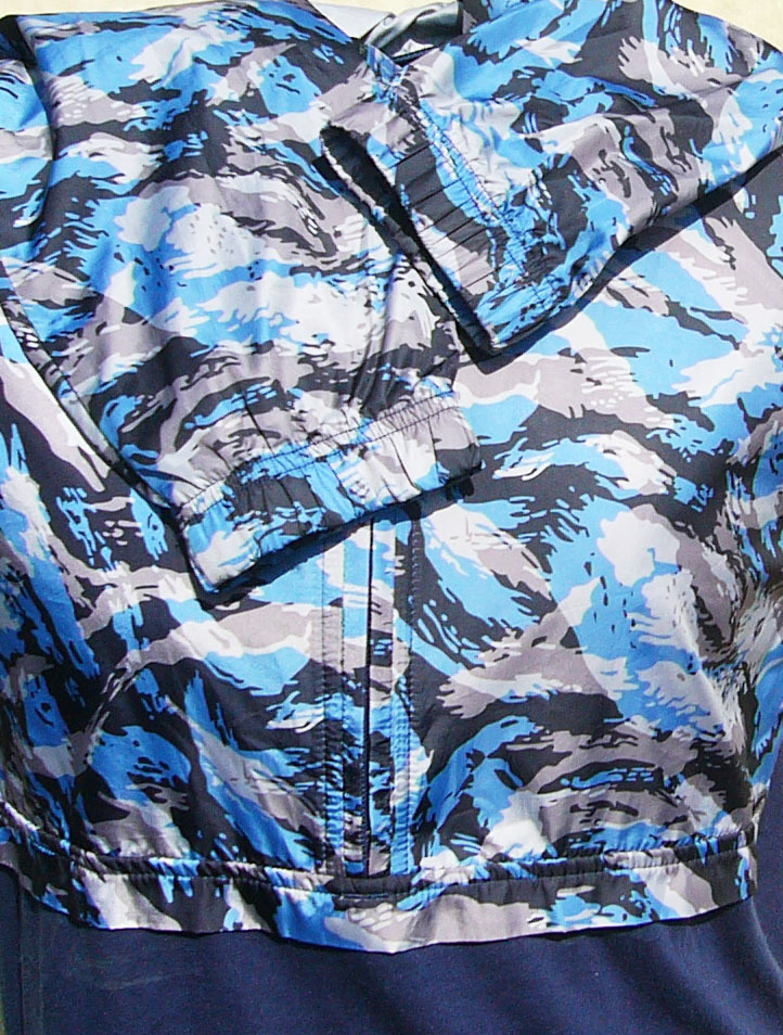 無地部分はネイビー、柄はブルーと黒とグレーの組み合わせ