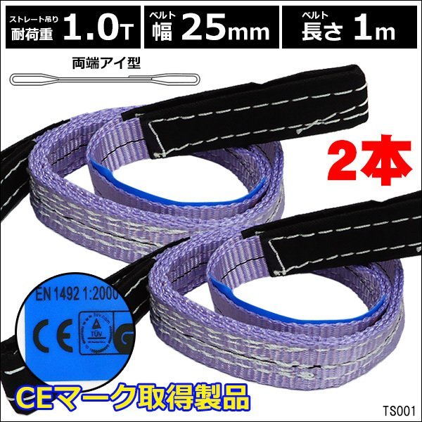 CE規格品 スリングベルト 幅25mm×1m ストレート吊 1T【2本セット】(新品・未使用)