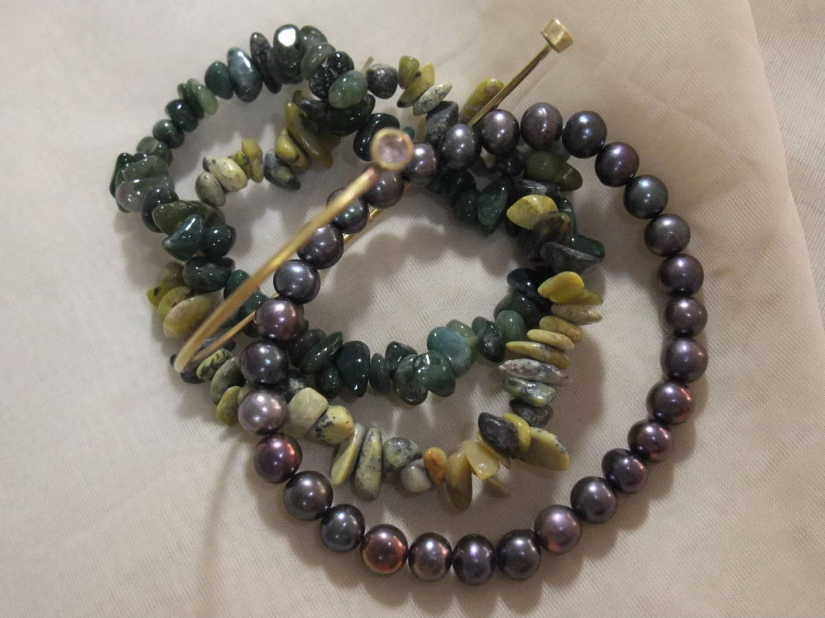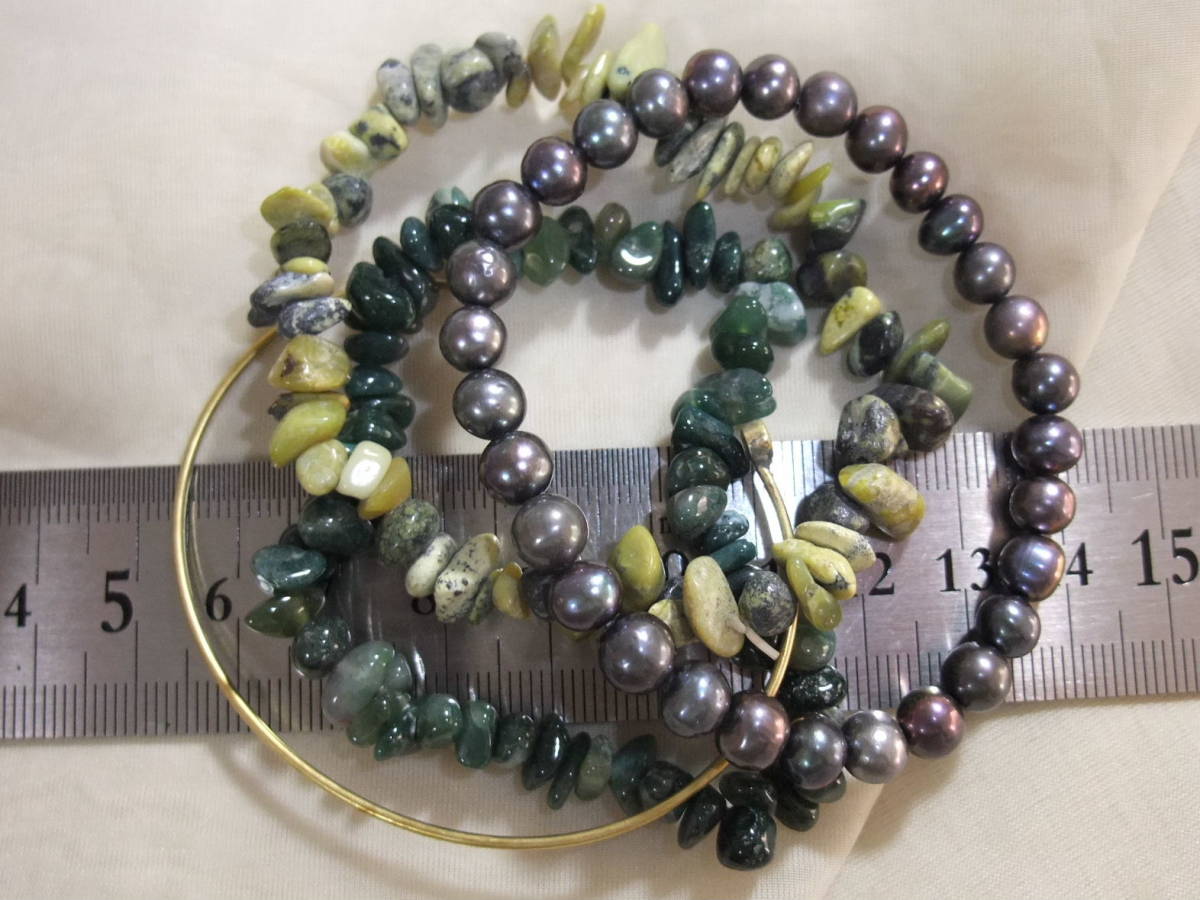 淡水パール天然石等!ブレスレット4本セット!綺麗なピーコックカラーのパールも!!高品質ラウンド系淡水真珠黒真珠pearlとオリーブジェイドや瑪瑙等セット!レトロ真鍮バングル素材も!真珠はラウンド~セミラウンドバロックまで☆!未使用新品!古い在庫!レトロ系 ビンテージアンティークタイプシンプル系色々 東洋のパワーストーン真珠天然石 魔除け 厄除け 開運製品製作用にも☆