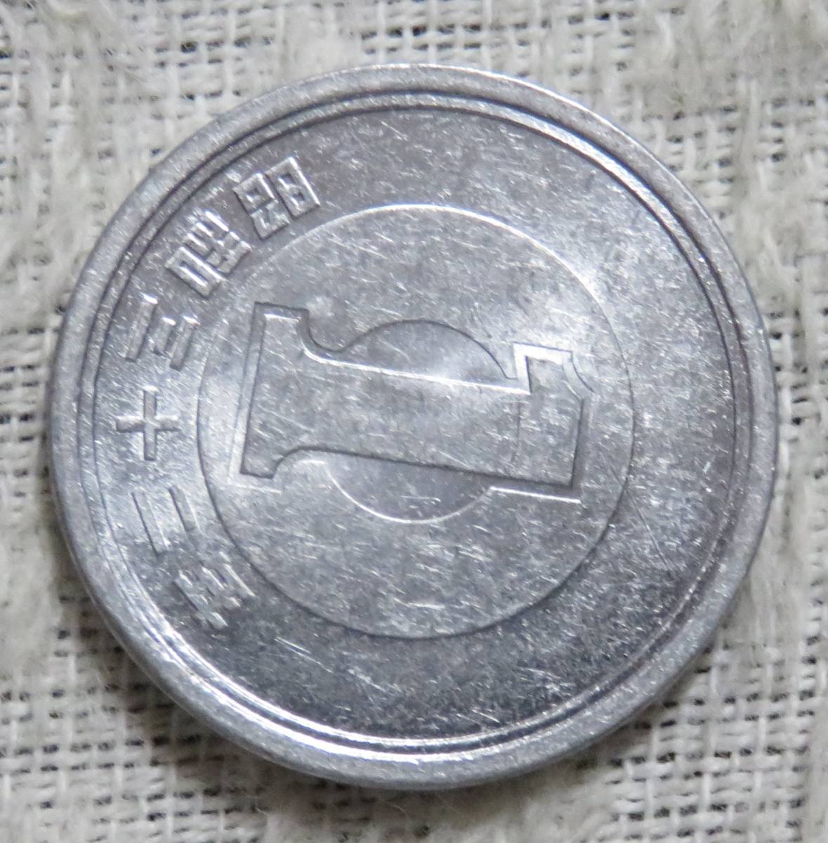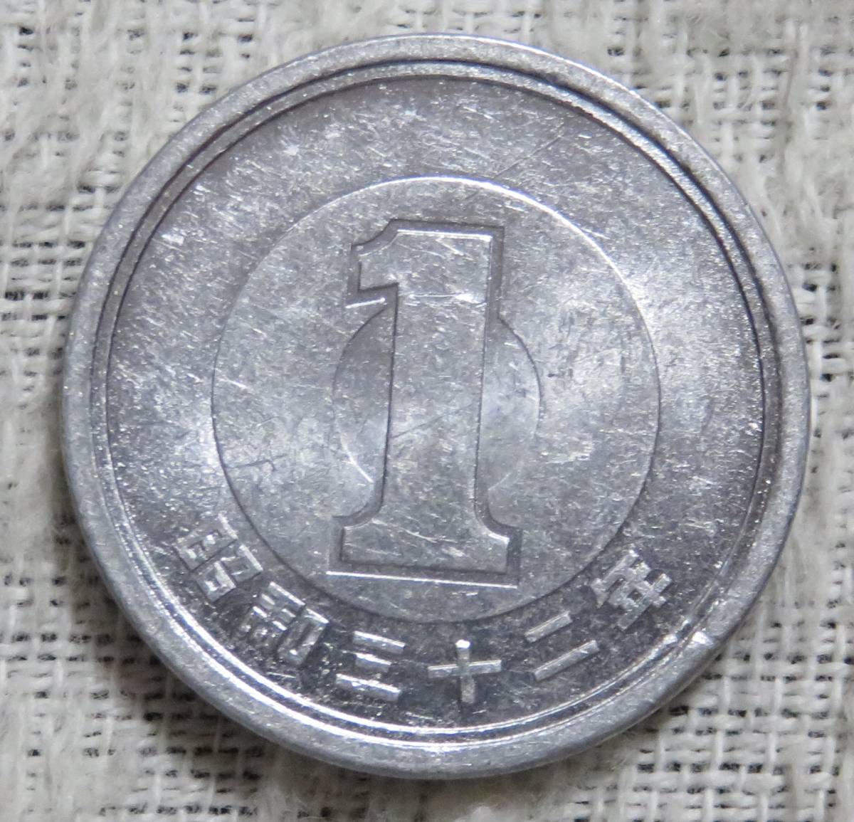 昭和30年代の1円アルミ貨は、近年の1円とは違い全体的に梨地状のものが多く、