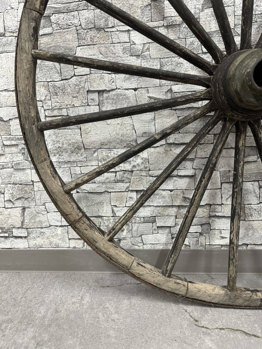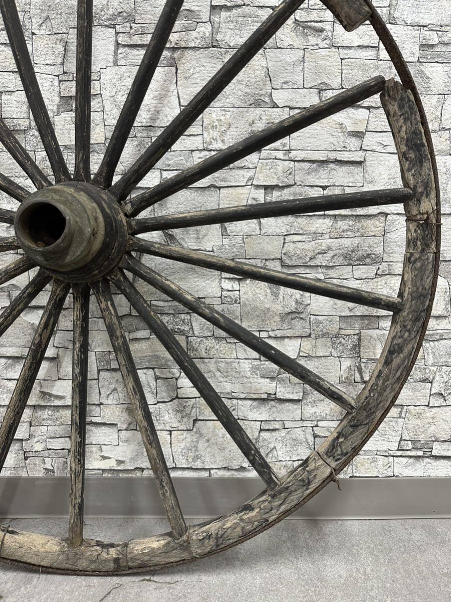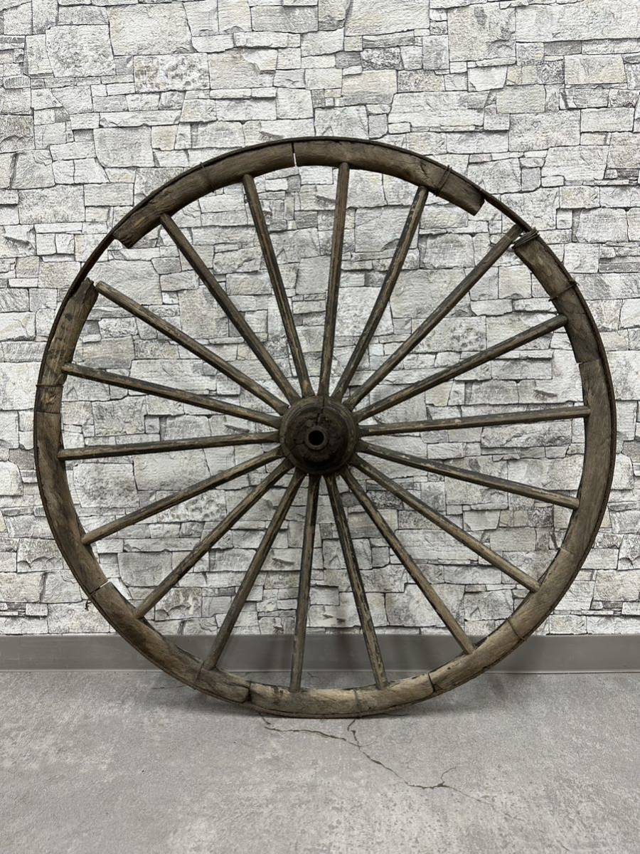 SNT-46 大八車 アンティーク 古民具 馬車 80㎝径 荷車 鉄枠車輪 ガーデニング 古民家 レトロ 木製 鉄輪 飾り物 置物 オブジェ