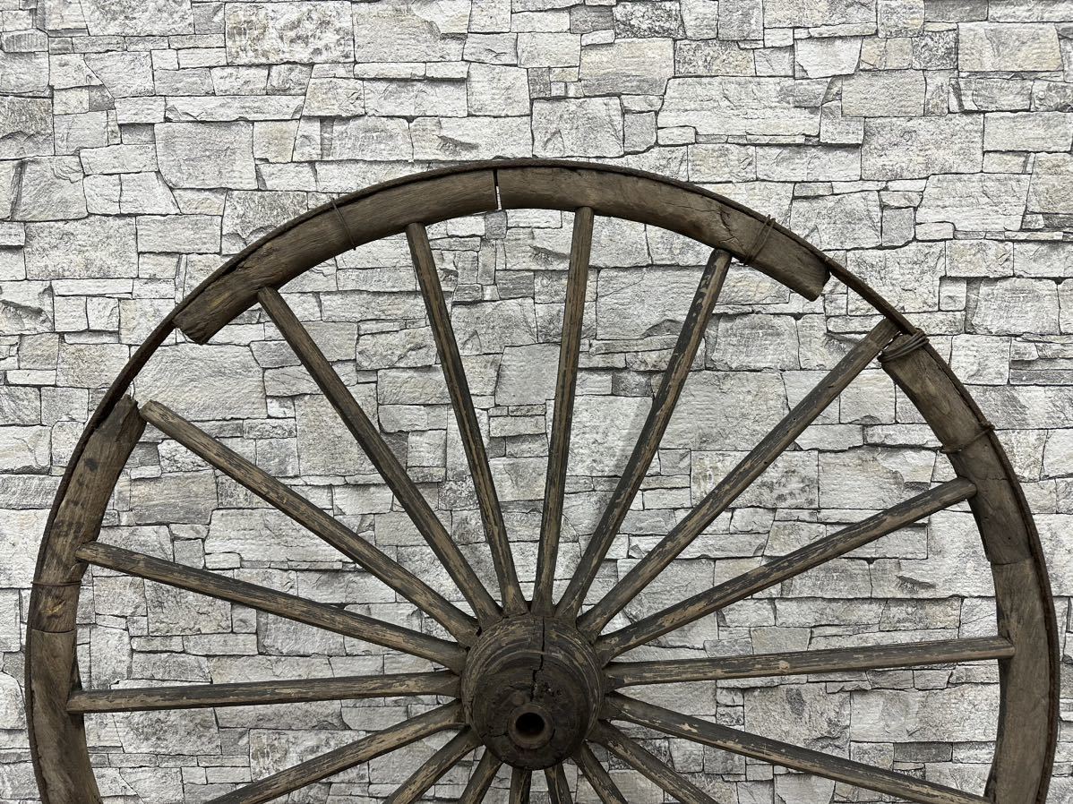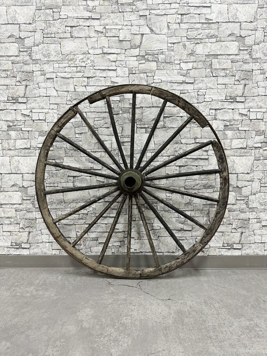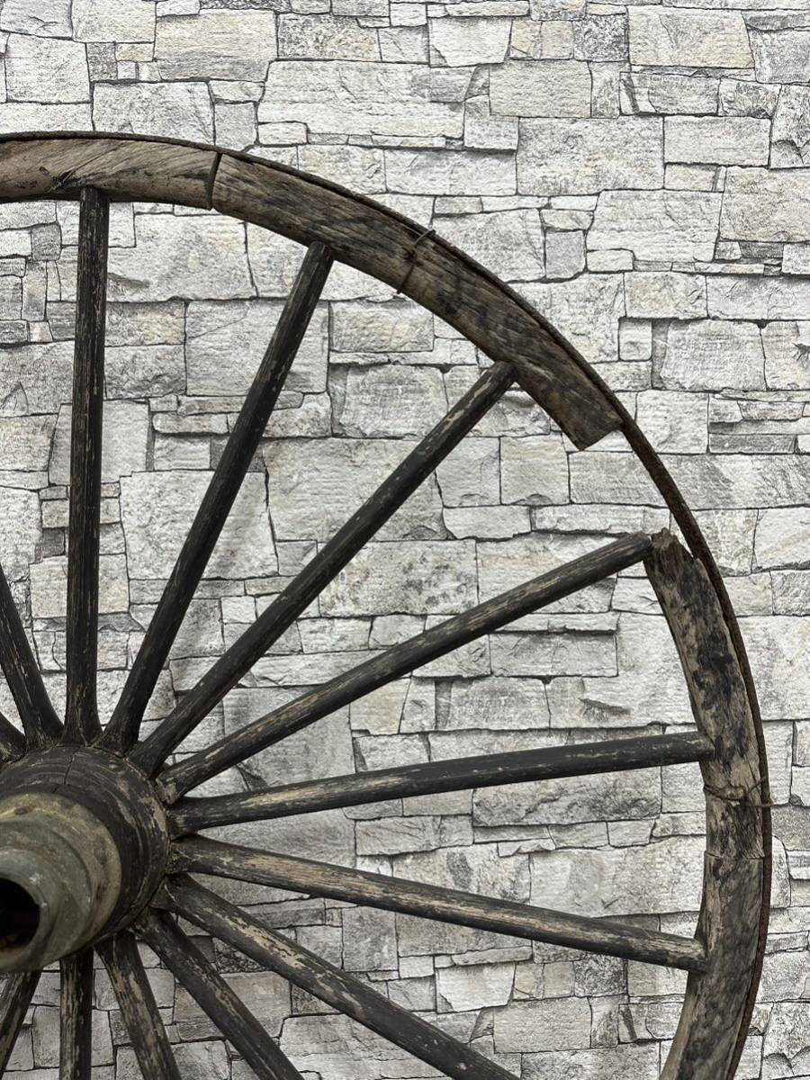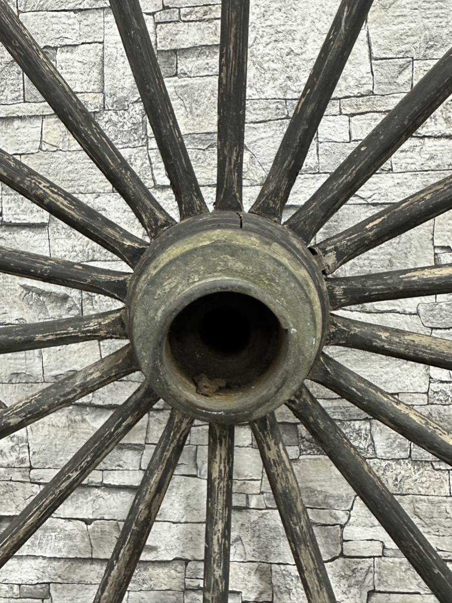 SNT-46 大八車 アンティーク 古民具 馬車 80㎝径 荷車 鉄枠車輪 ガーデニング 古民家 レトロ 木製 鉄輪 飾り物 置物 オブジェ