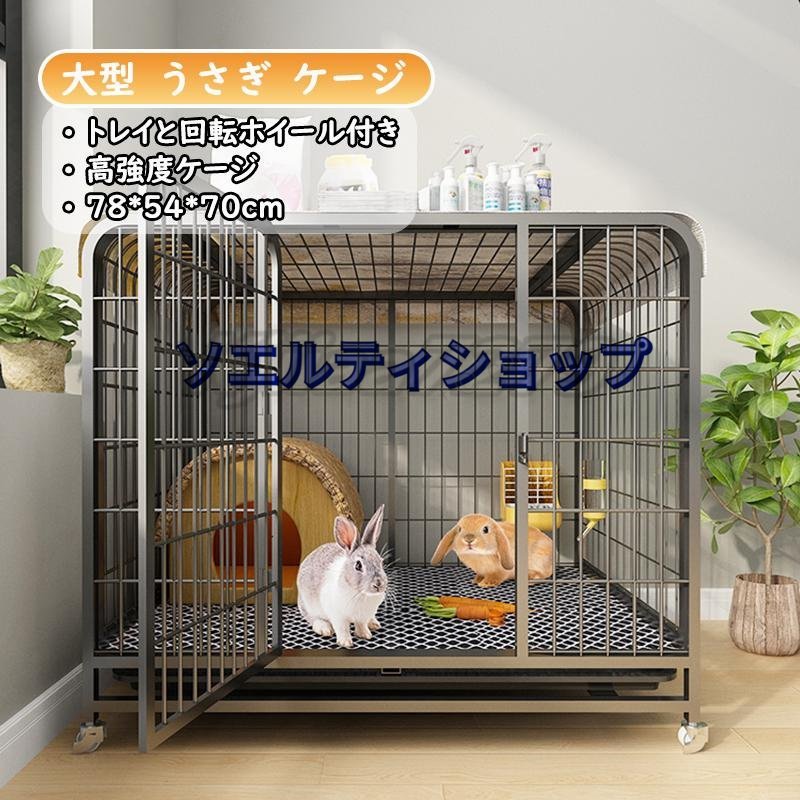 大好評★大型 ウサギ ケージ うさぎ ケージ トレイと回転ホイール付き (78*54*70cm) 大きい うさぎ トイレ ペットケージうさぎ 兎 ケージ
