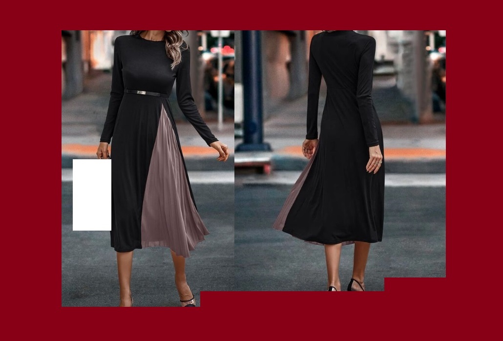 新品・未使用 完売☆ツートーン プリーツヘム ベルトなし ドレス ワンピース☆