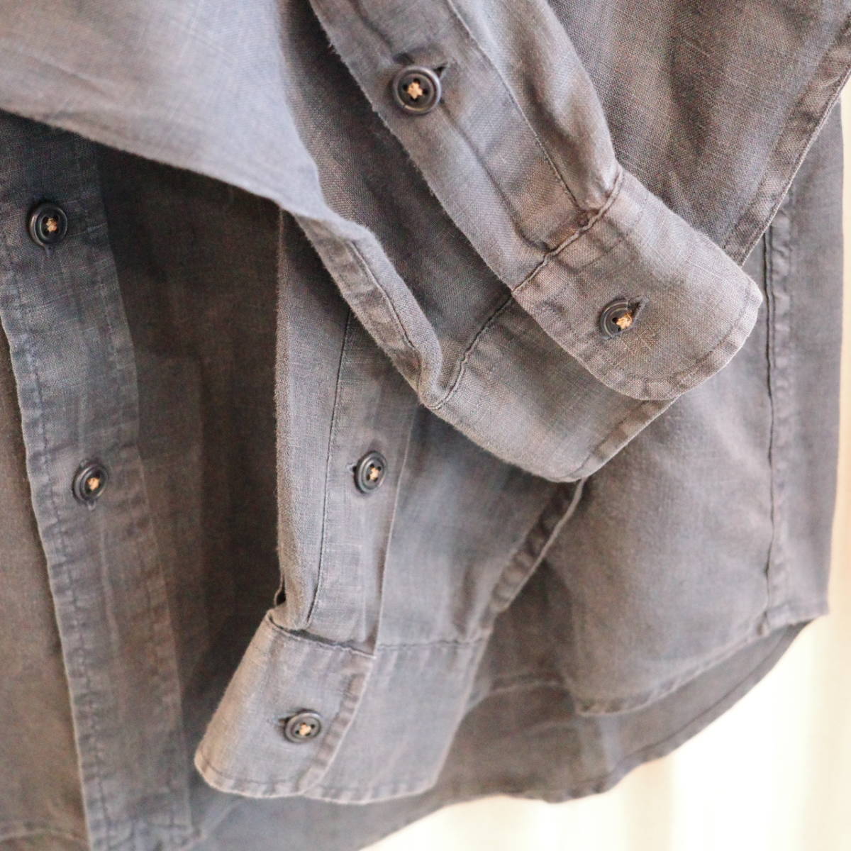 右袖のボタンに欠けと割れがあります。