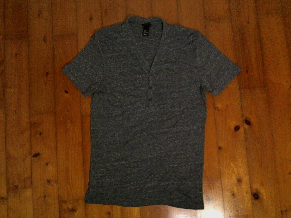 | ☆エイチ&エム【H&M】ヘンリーネック 半袖Tシャツ M 濃いグレー 霜降り チャコール | |