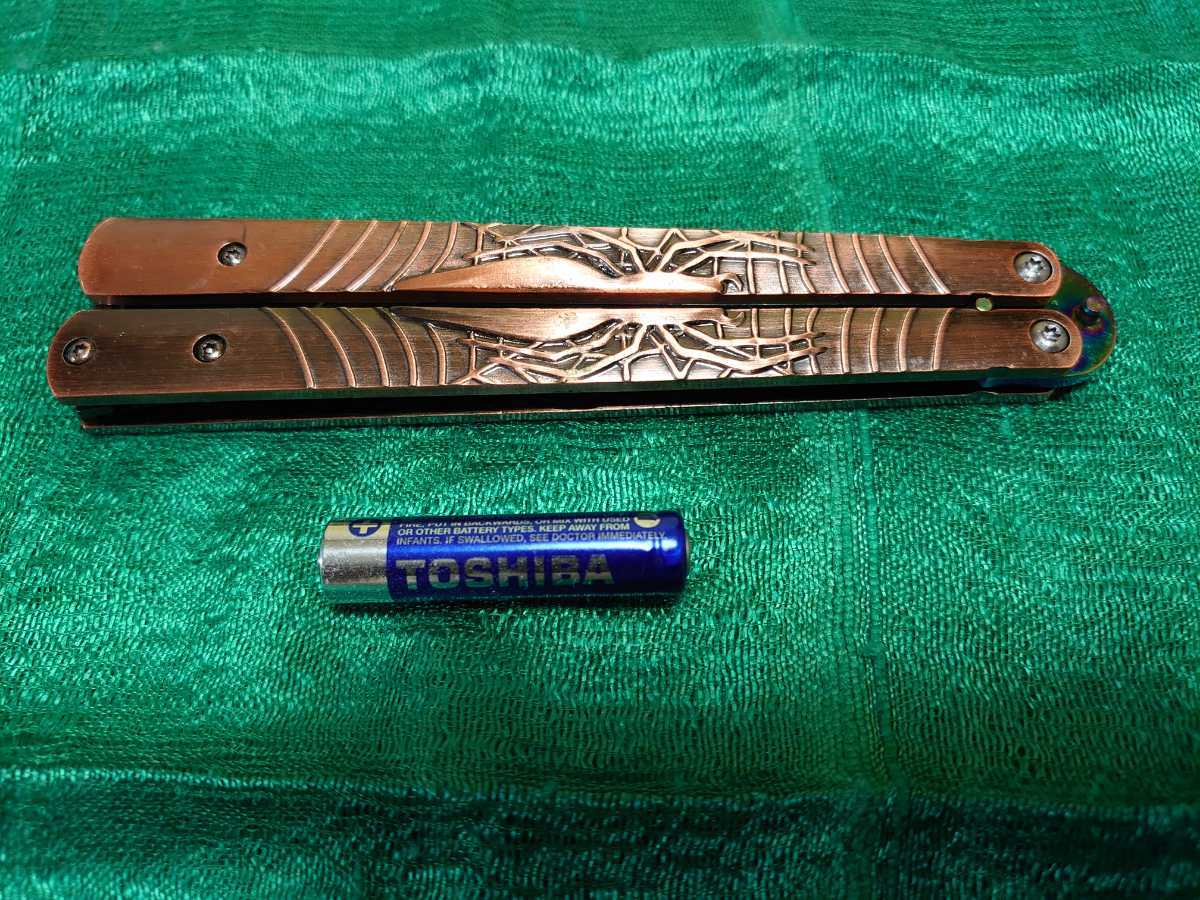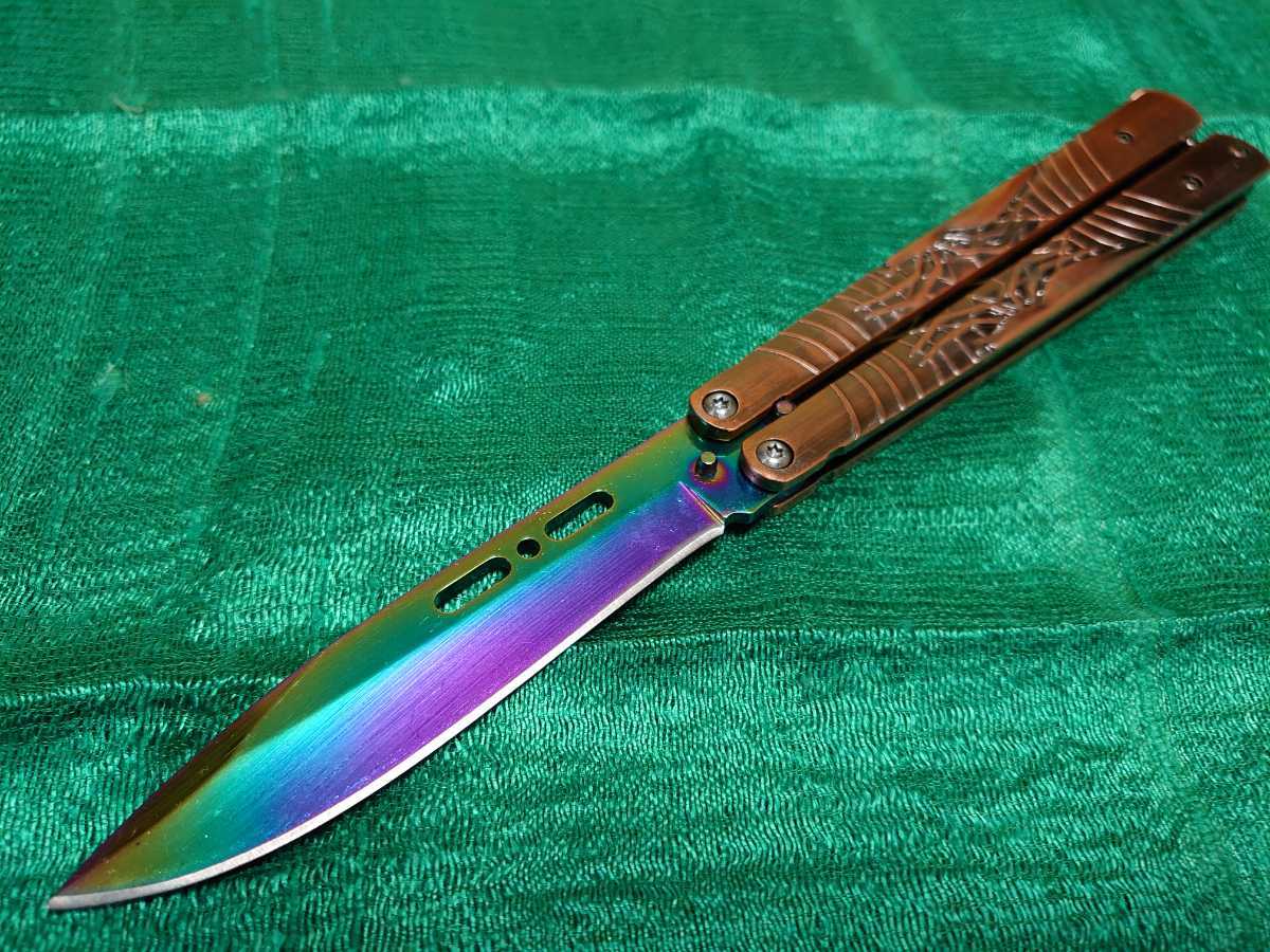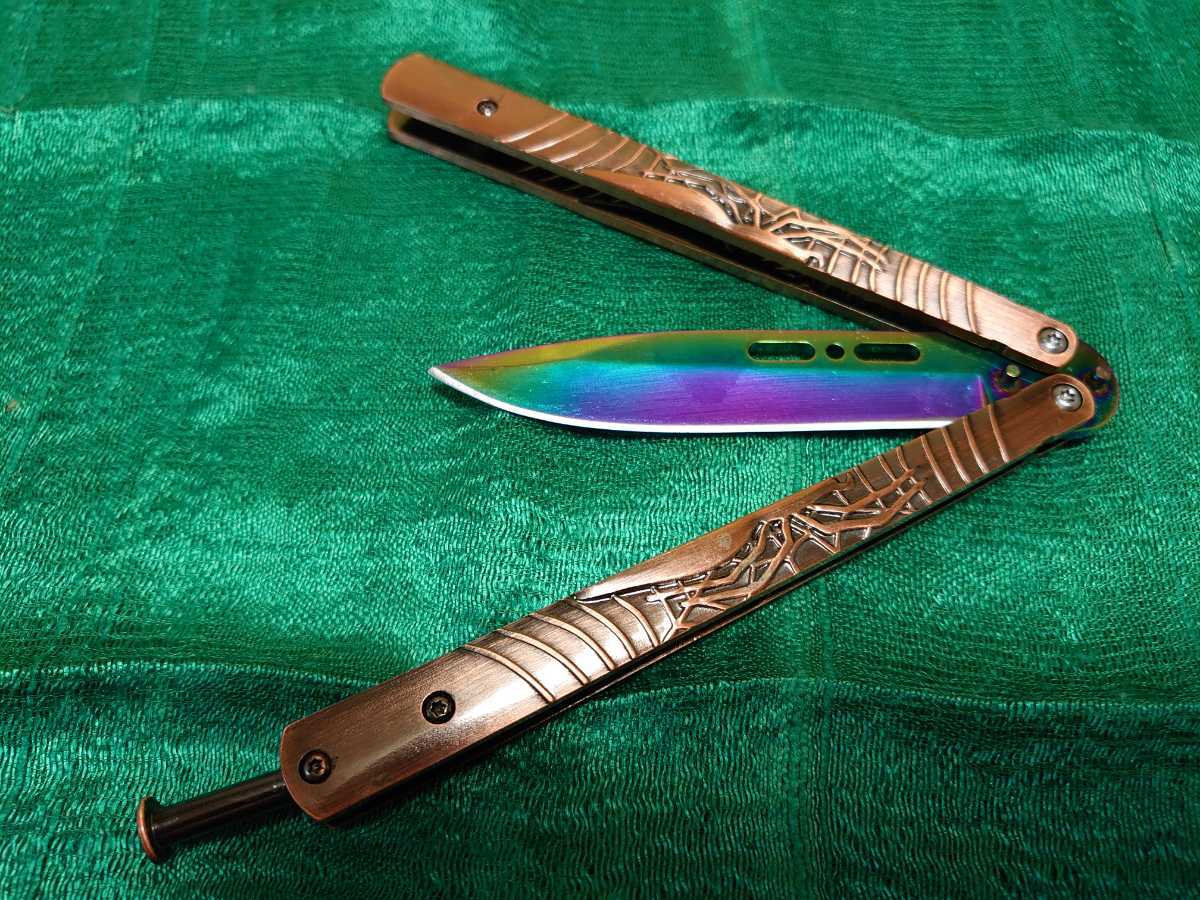 レインボーメタル&スパイダーグリップのバタフライナイフです。