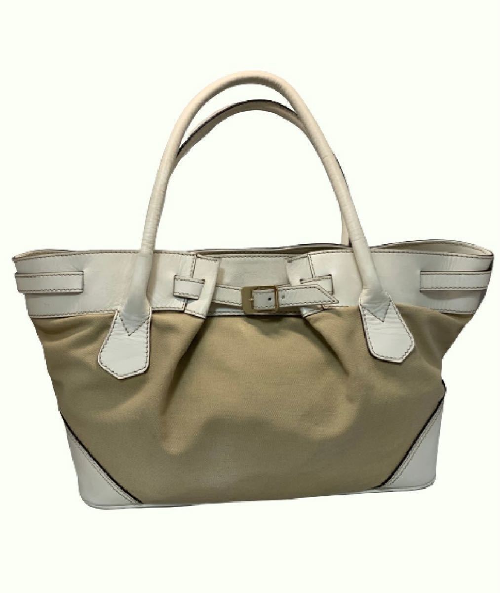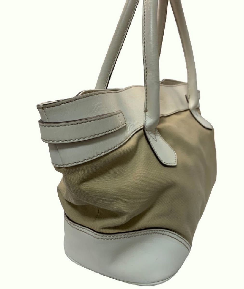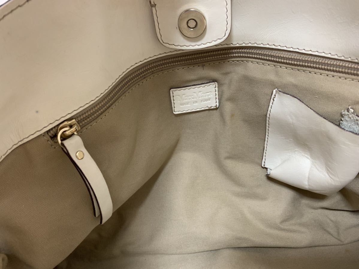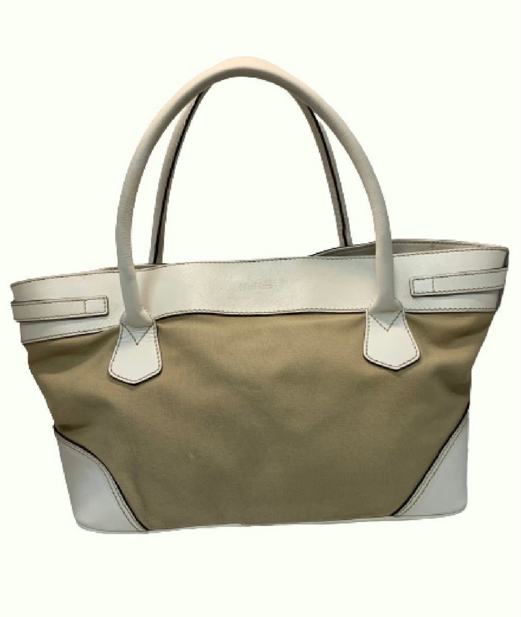 マグネットホックで開閉。インナーファスナーポケット付き。インナー本革小物ポケット付き。大型収納力バツグン。超一流ブランドMaxMaraならではの仕立ての良さ。これからの季節にぴったりのレザーコットンコンビトート。