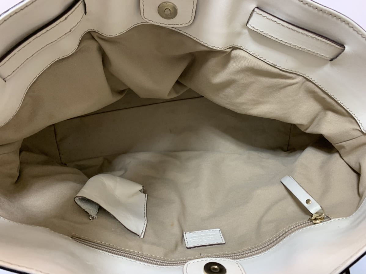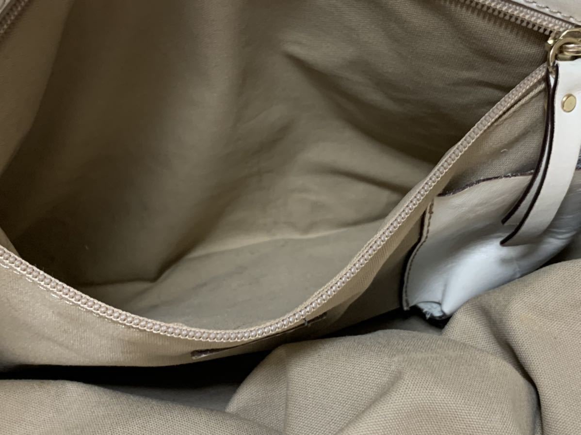トップライン、持ち手ソール本革レザーホワイト。ボディ、インナーコットンキャンバスベージュ。