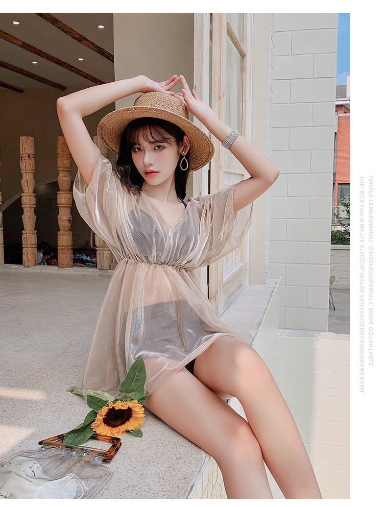 キラキラ光沢感と透け感があるシースルートップスとホルターネックビキニ 3点セットです☆彡