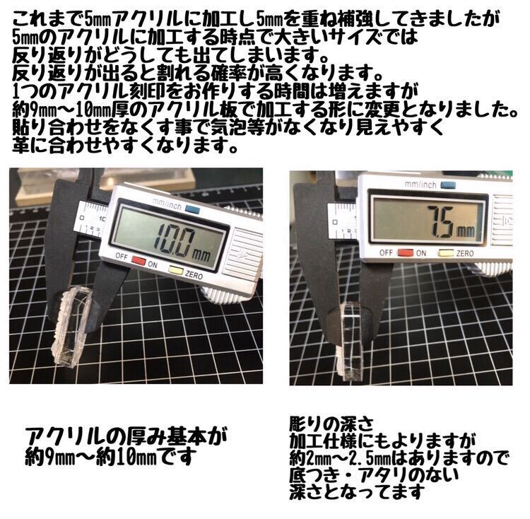 全て手元にあるアクリル刻印のみを出品致しますが、仕事の都合で発送までに2~3日ちょうだいしております。