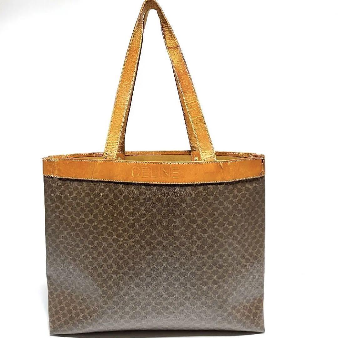 セリーヌ 14470 肩掛け ショルダーバッグ トートバッグ マカダム柄 レディース ブラウン 茶色 PVC レザー CELINE