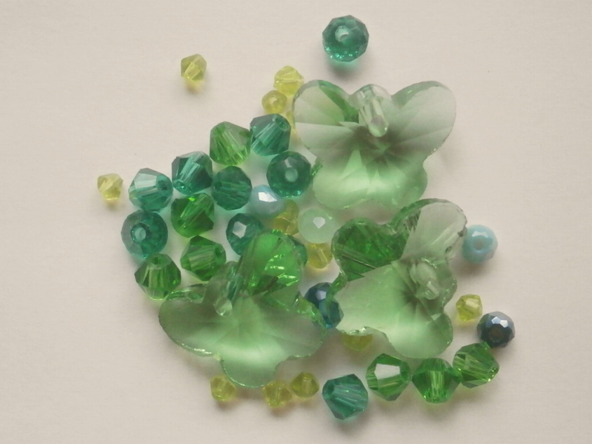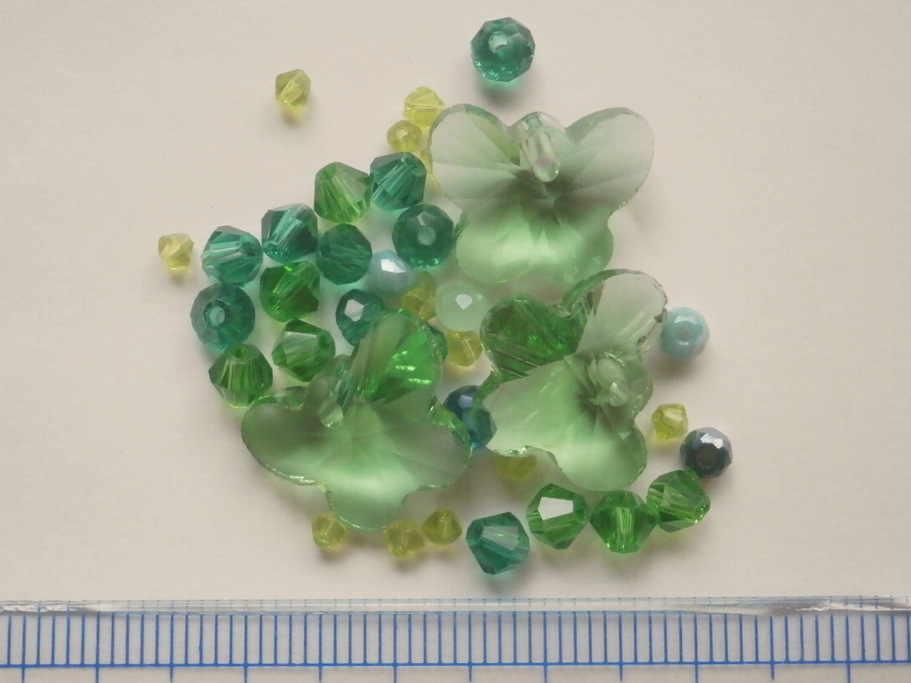 ガラスビーズ★蝶々★1つ穴★グリーン系★D