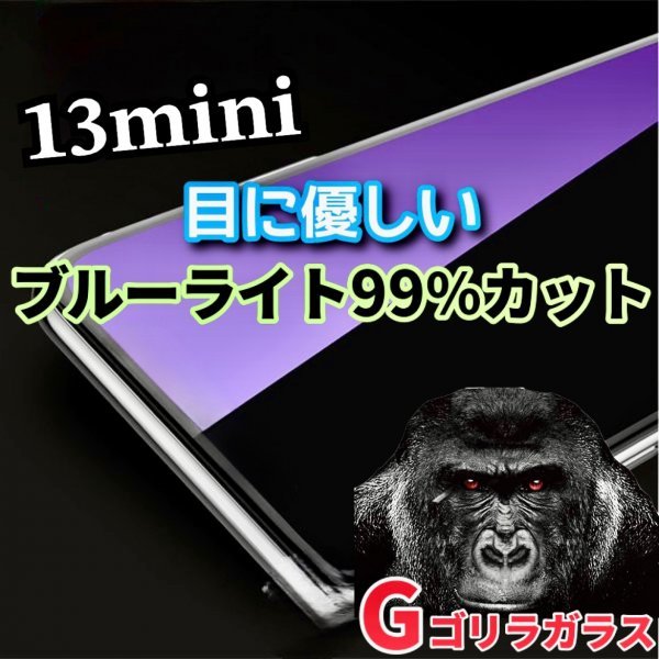 目に優しい【iPhone13mini】ゴリラガラス ブルーライト99%カットガラスフィルム