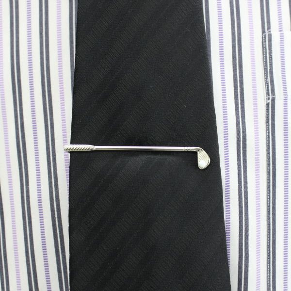 シルバーのゴルフクラブがユニークなネクタイピン。