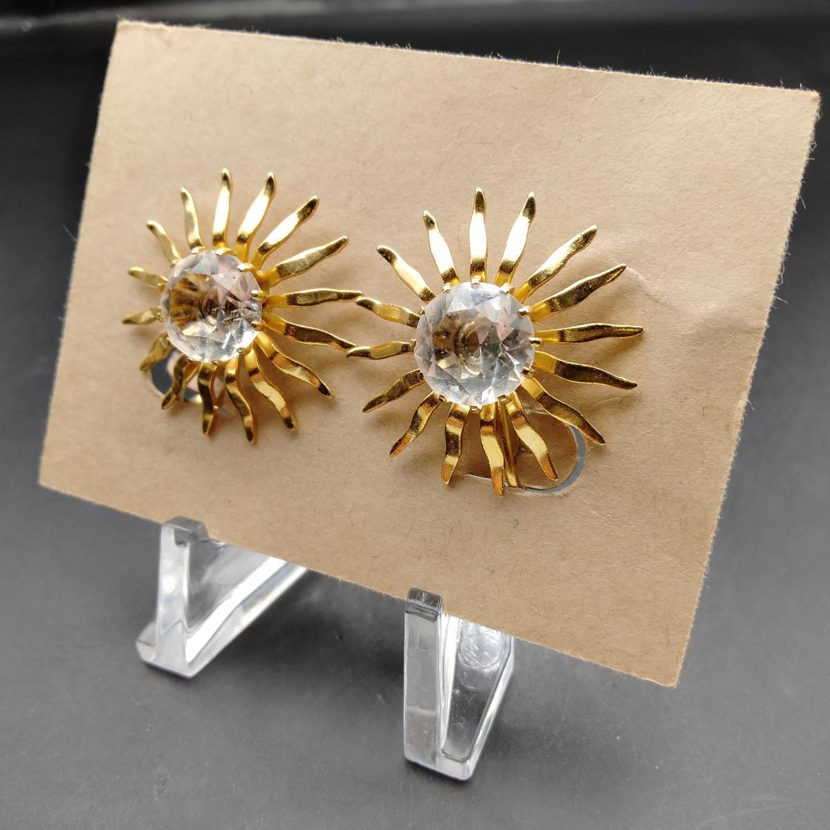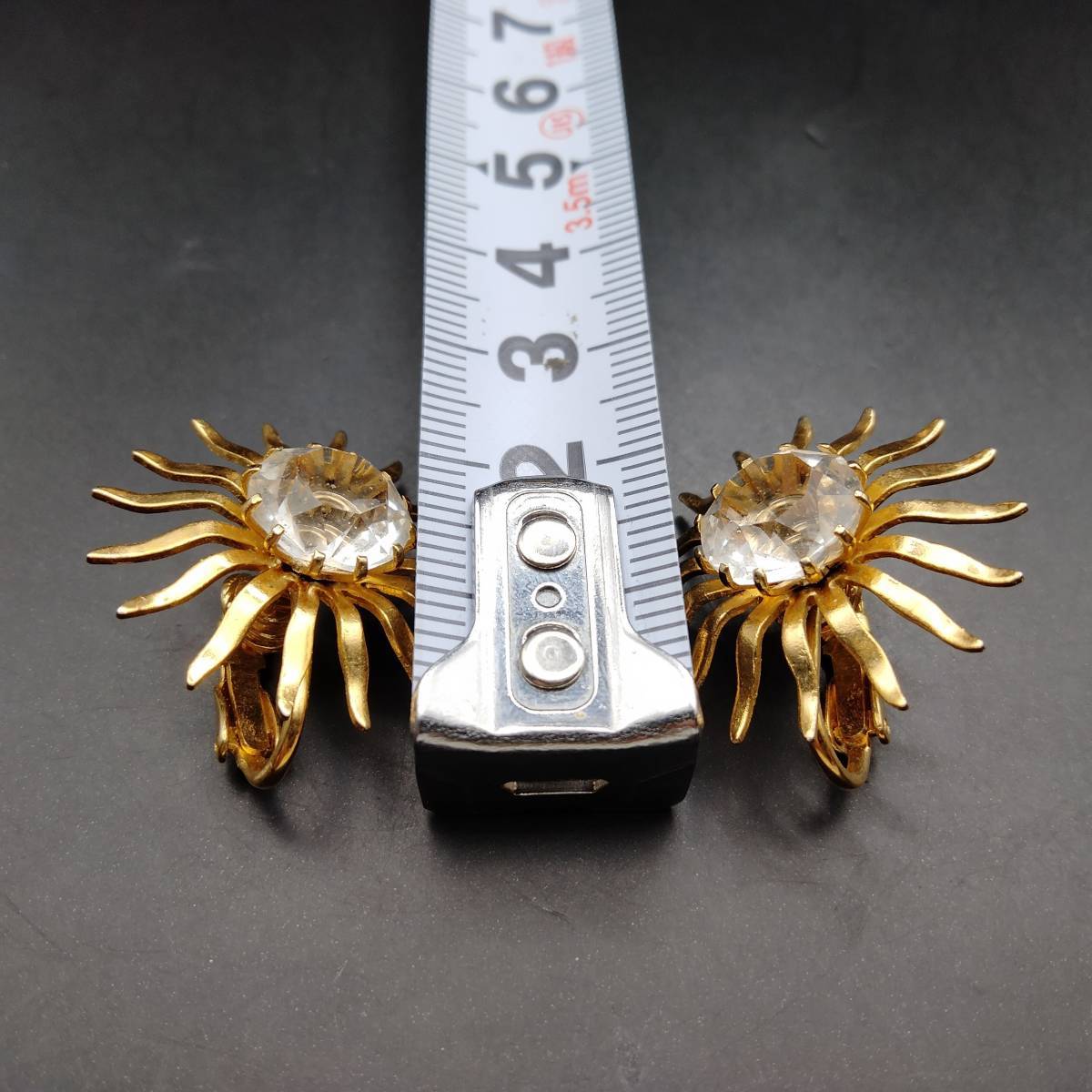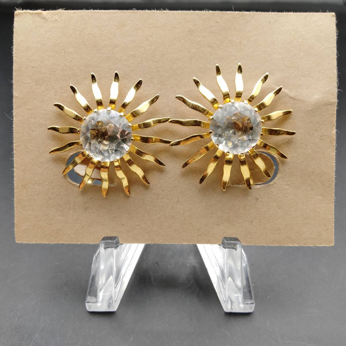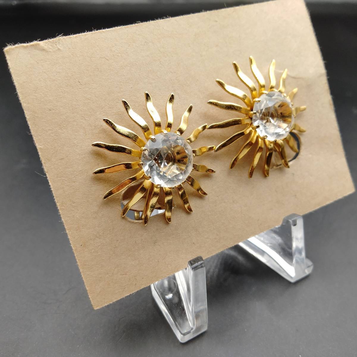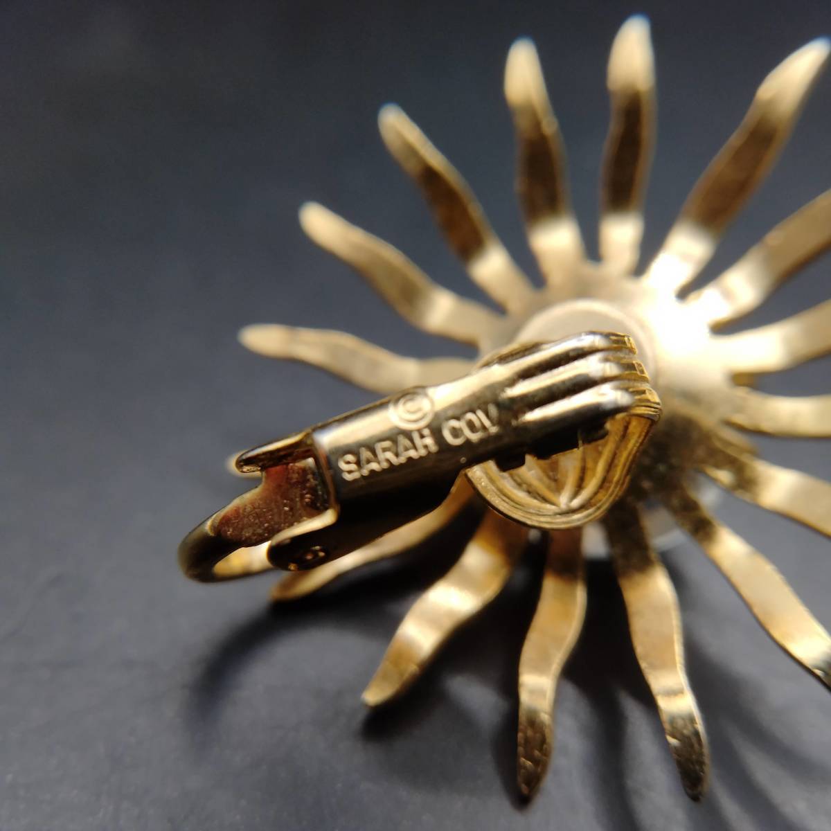 SARAH COV フラワー モチーフ クリア ラウンド ストーン ビンテージ ピアス イヤリング 昭和レトロ コスチューム ジュエリー 輸入 7S-A