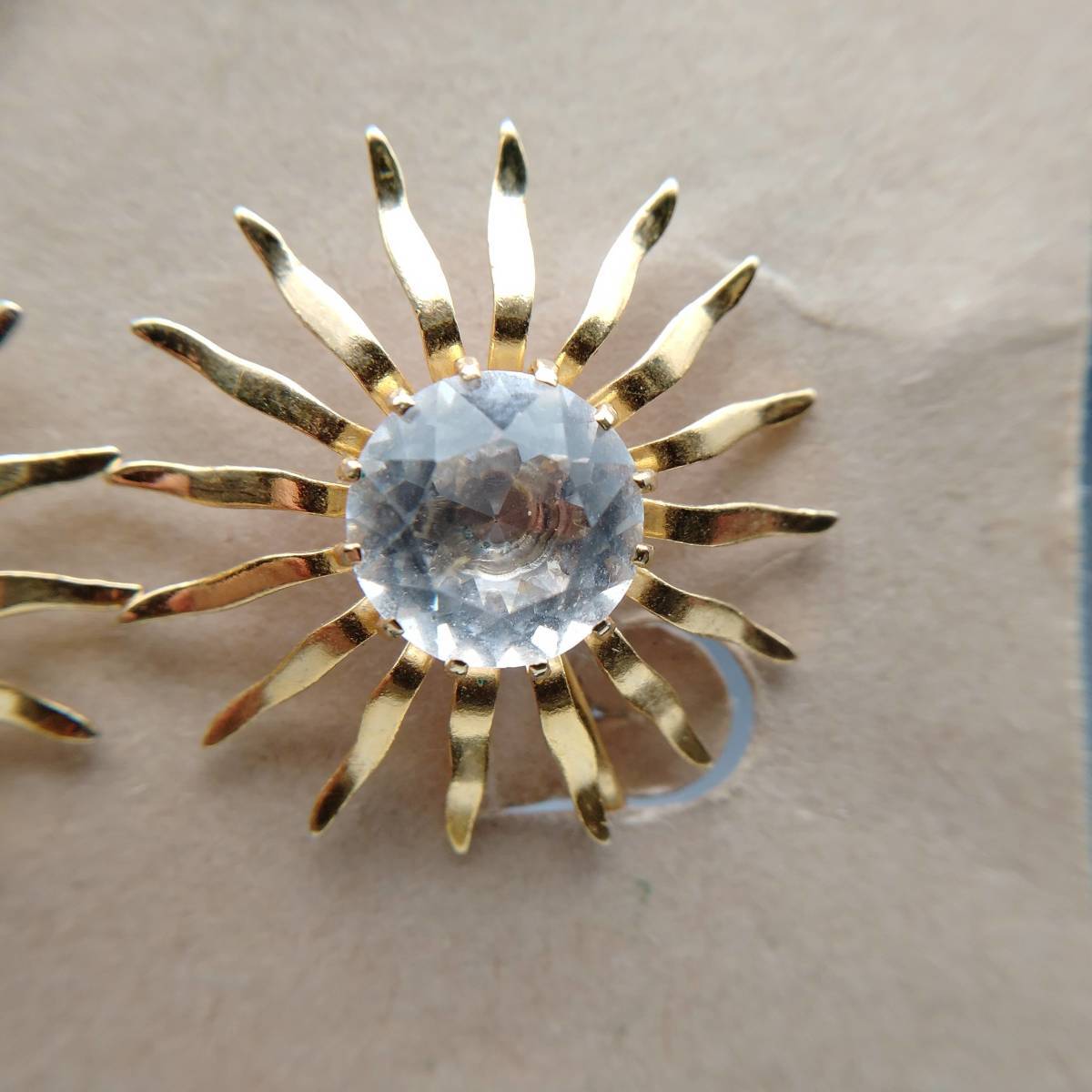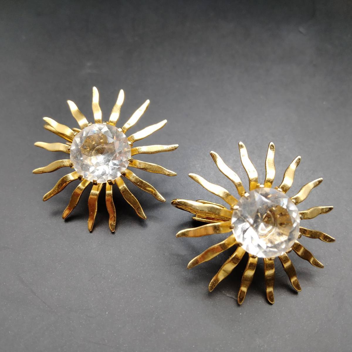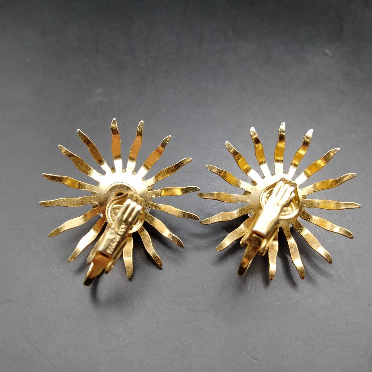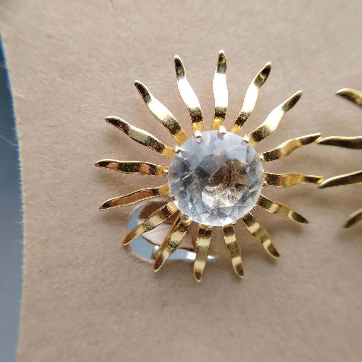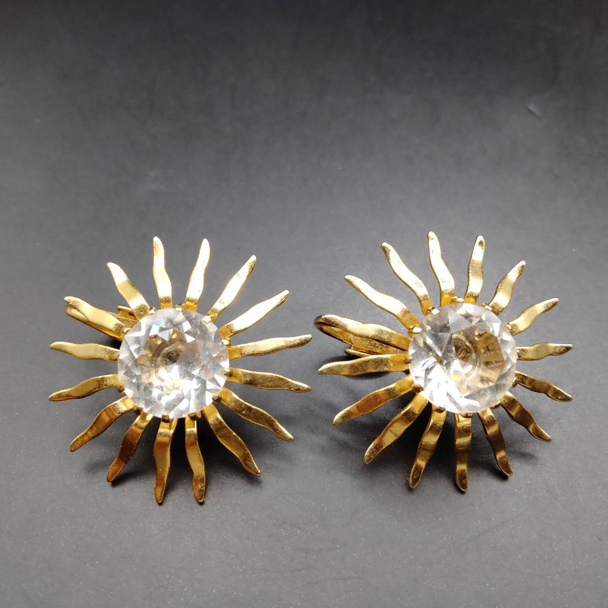 SARAH COV フラワー モチーフ クリア ラウンド ストーン ビンテージ ピアス イヤリング 昭和レトロ コスチューム ジュエリー 輸入 7S-A