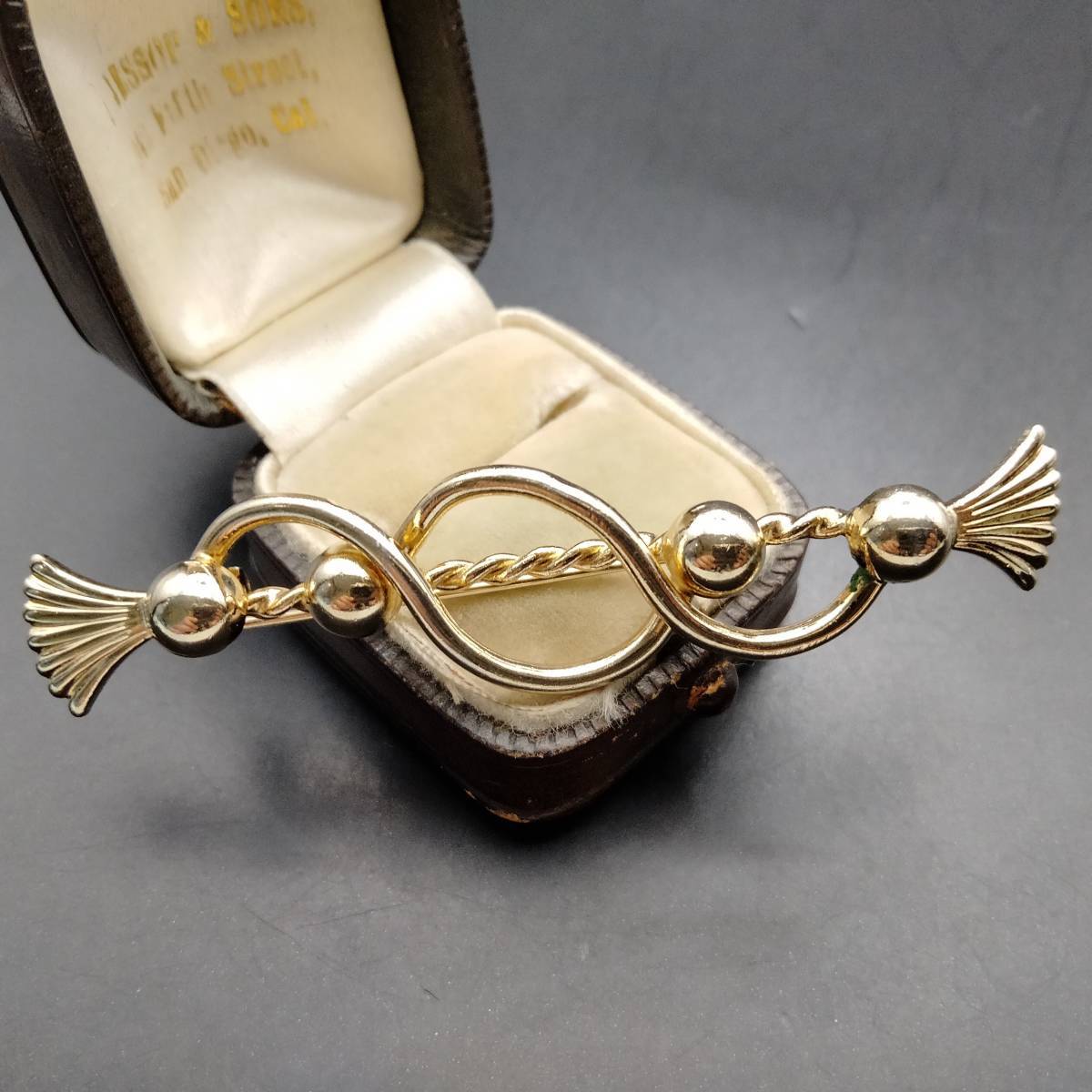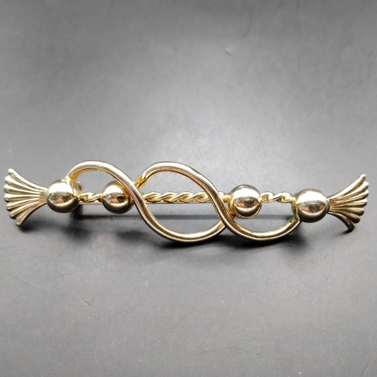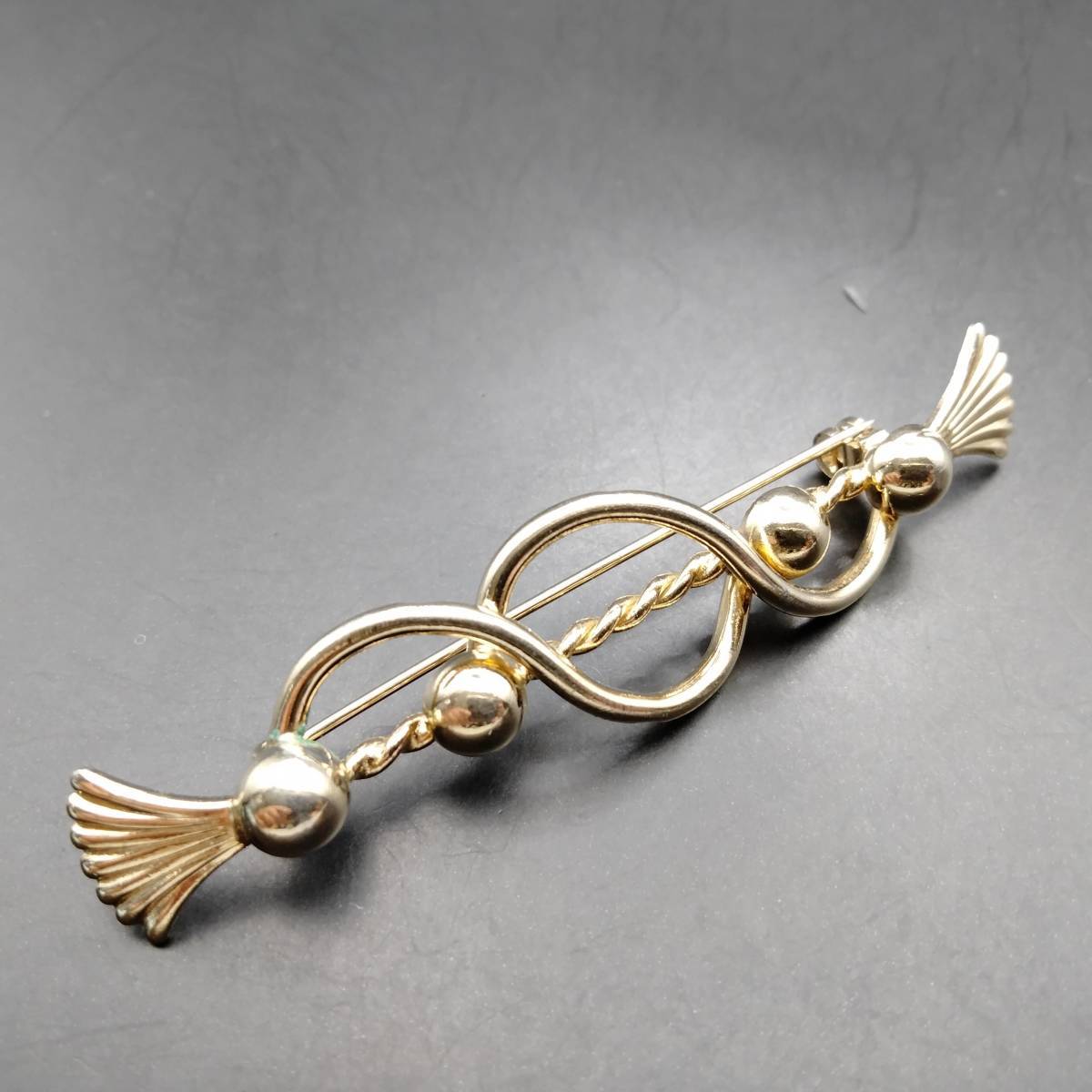 メタル クラシック デザイン カーブ ゴールドトーン ビンテージ ブローチ 昭和レトロ コスチューム ジュエリー 輸入 7S-J