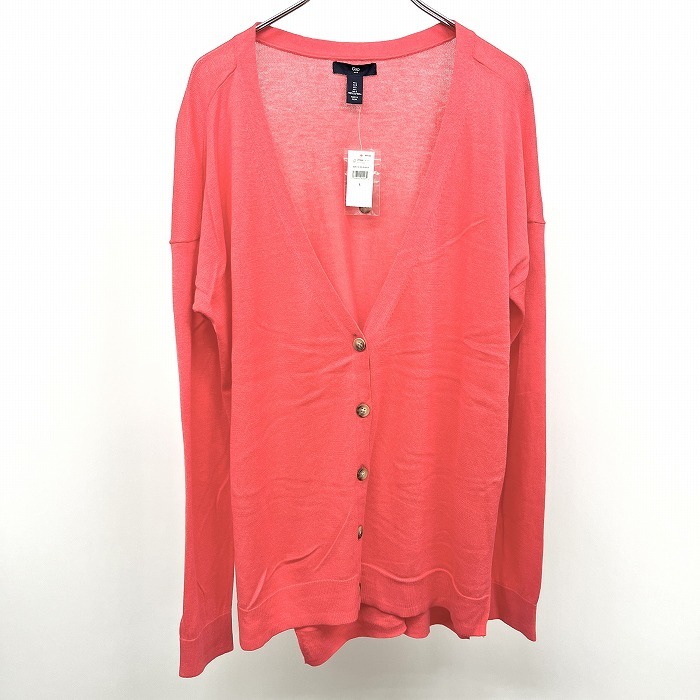 | 商品タイトル | ギャップ GAP カーディガン ニット 長袖 ロングスリーブ 薄手 無地 Vネック ボタン留め ロングテール 綿×レーヨン L ピンク レディース |