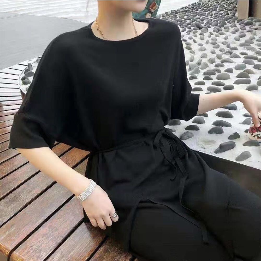 無地 上下セット/ウエストマーク春夏/韓国ファッション
