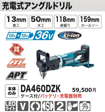 マキタ 充電式アングルドリル DA460DZK 本体のみ ケース付 18Vx2本使用 36V 新品