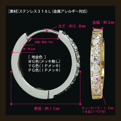 【jf】◆金属アレルギー対応素材 サージカル ステンレス316L プラチナ色 キュービック 1.5mm x 8石 中折れ フープ◆≪普通郵便送料無料!≫