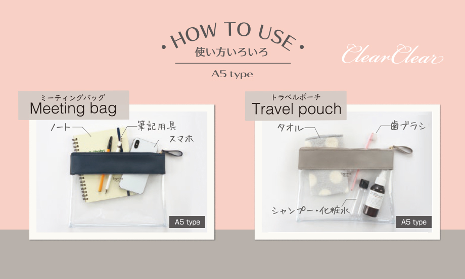 【即決】■ラポルタ■クリアケース クリアポーチ /A5 ペールピンク /クリアクリア /セキセイ /メイクポーチ 防水 マチ付 //LA-6355-27