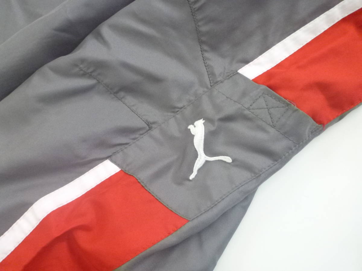 新品 PUMA プーマ ★グレー×白×赤 裏地メッシュ 裾ファースナー 両サイドポケット ジャージ パンツ M…150相当 サッカー