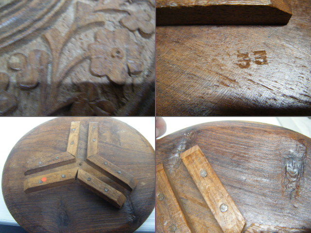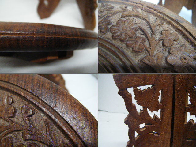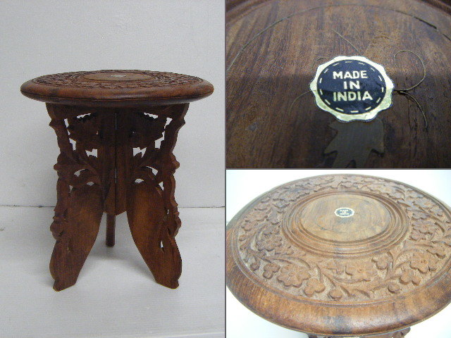 | 彫刻 花台 飾り台 折り畳み ミニテーブル 三つ足 家具 インテリア アジアン雑貨 インド INDIA 高さ24cm 植木鉢台 | ||