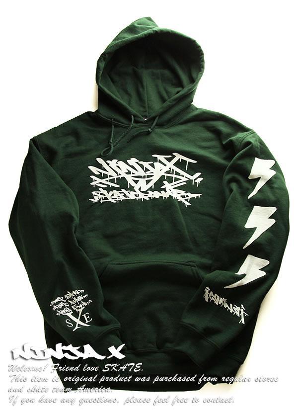 NINJA X パーカー フード プルオーバー Straight Edge Pullover Hoodie Original 2018 ニンジャエックス Forest Green Mサイズ スケボー SKATE SK8 スケートボード