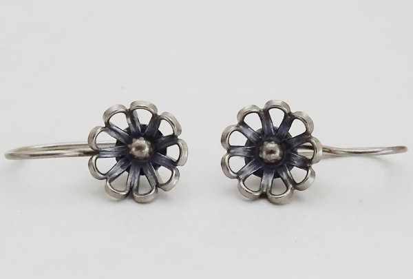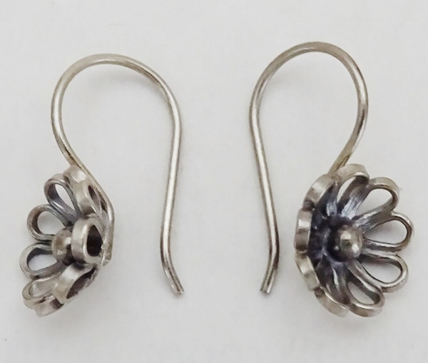 モン族のシルバーピアスです。 繊細な作りの花が女性らしいです。 ●全体の長さ:約2cm ●ピアストップ:約1cm×1cm |