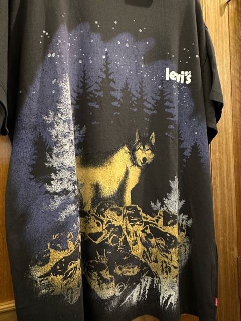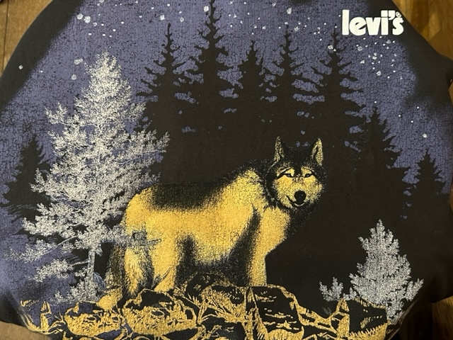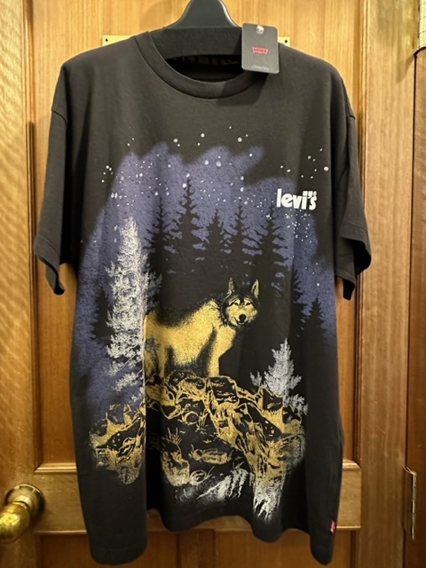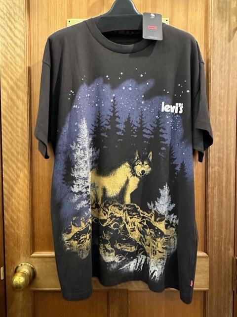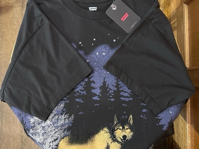 LEVIS Levi's 墨黒 ウルフ 狼 リーバイス 半袖 Tシャツ S 綿100% 日本M オーバーサイズ ドロップショルダー 新品未使用品 送料無料