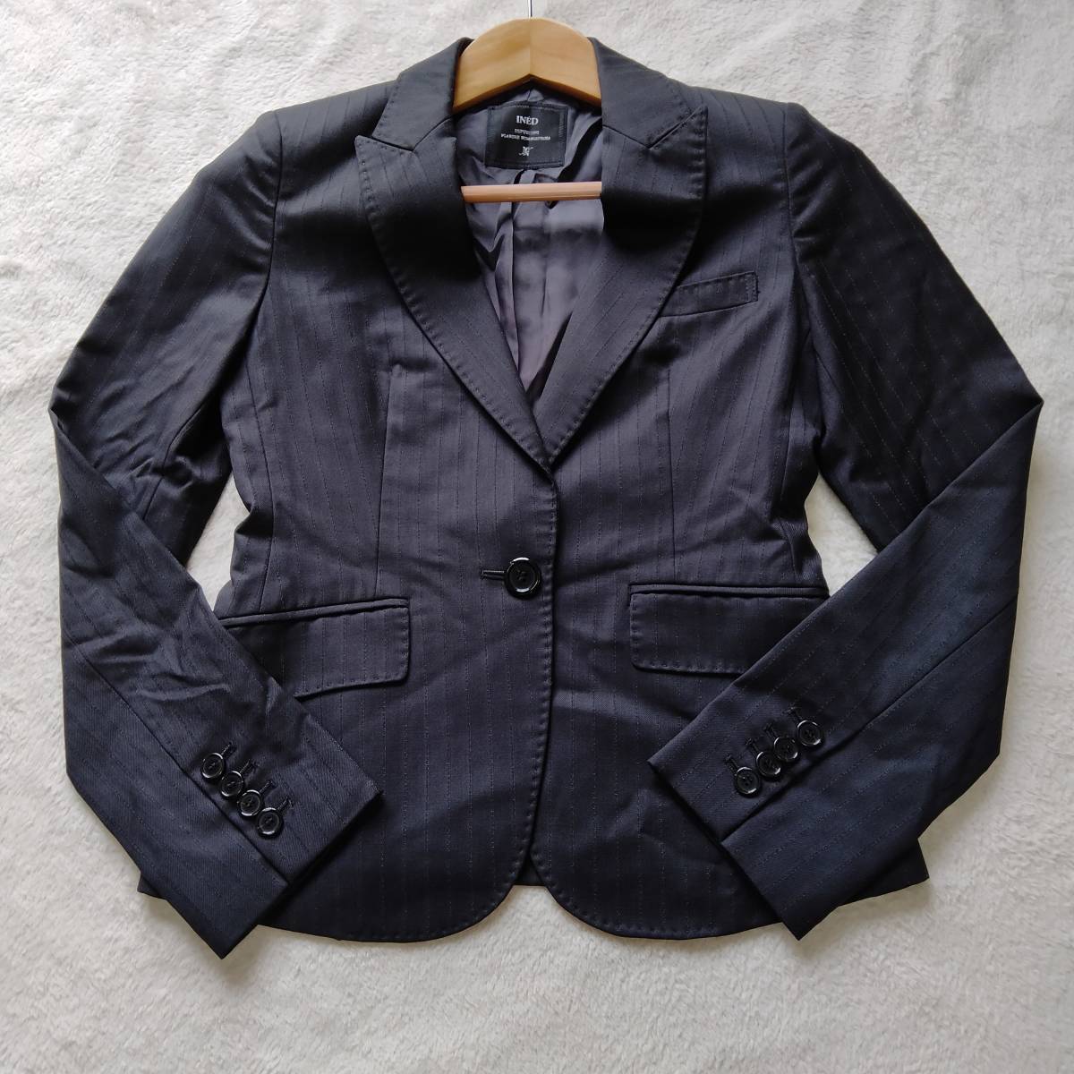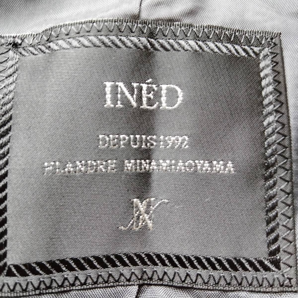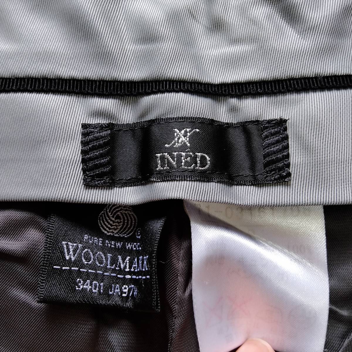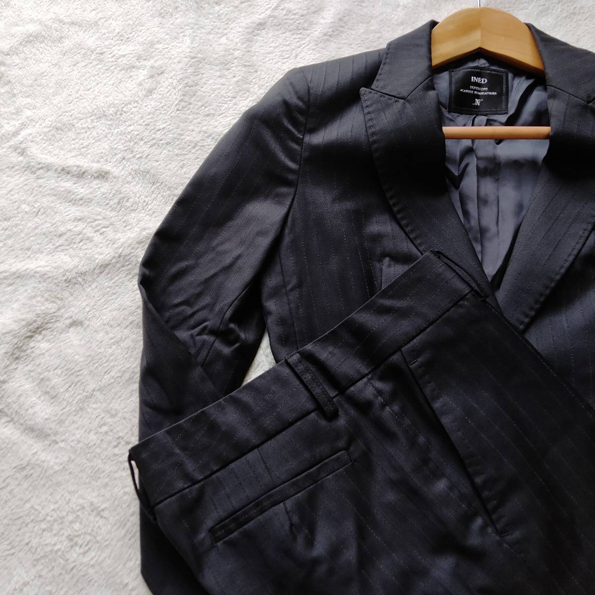 INED イネド セットアップ パンツ ジャケット ストライプ ワンボタン 無地 ショート丈 フルレングス ポケット ブラック サイズ7 SSA76