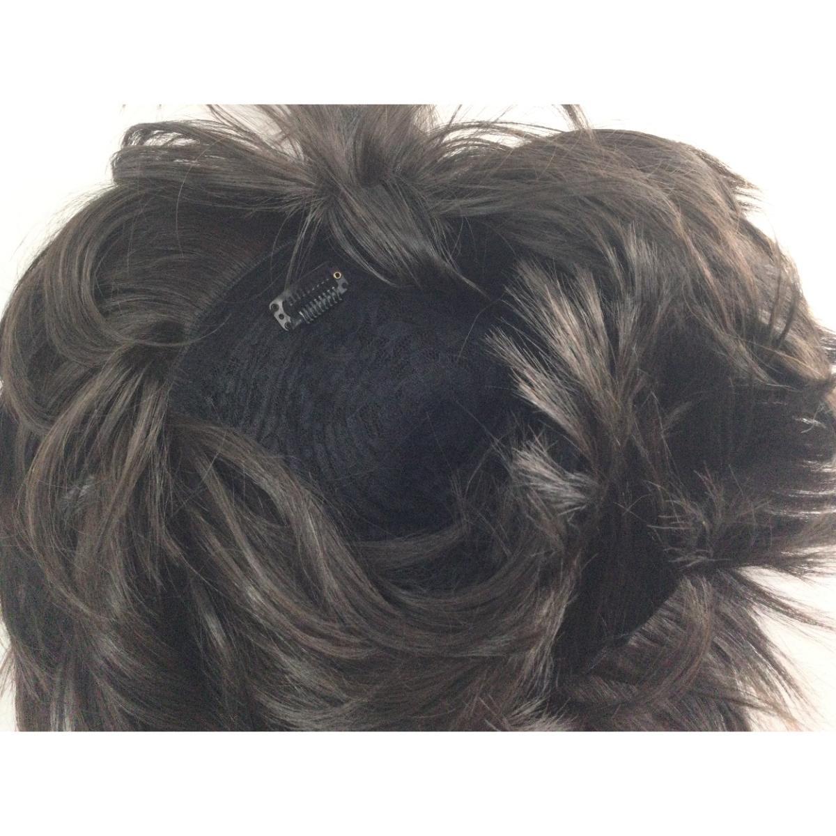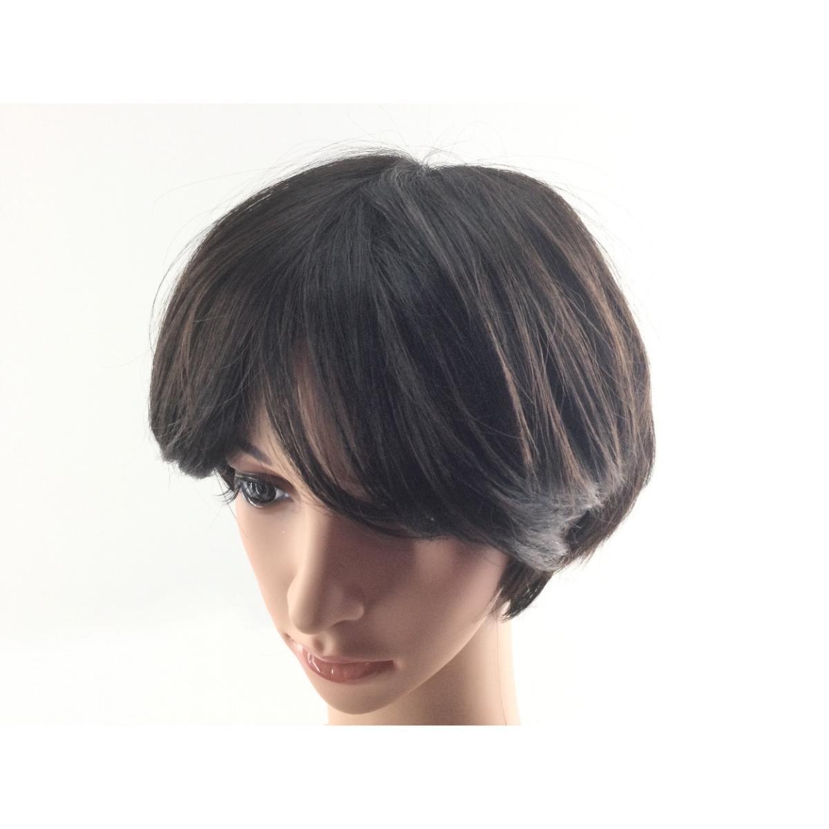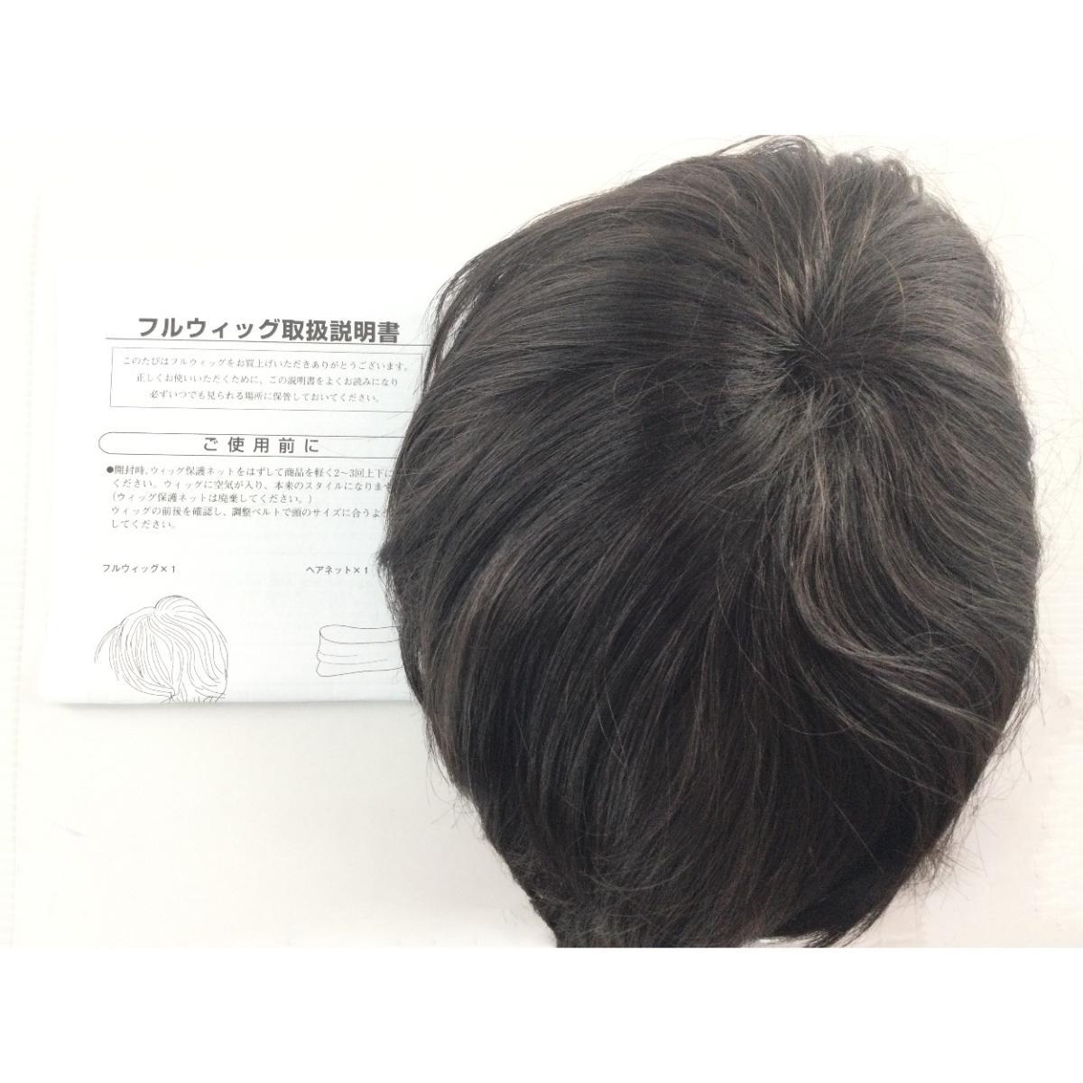 前髪の幅が一般的なウィッグより狭く、小顔に見えるフルウィッグ (シャギーショート ダークブラウン)。ストッパー付き
