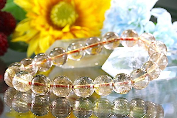 【送料無料】ゴールド ルチルクォーツ《珠径10mm内径17cm》金針水晶パワーストーン天然石ブレスレット浄化金運仕事運開運幸運激安9826