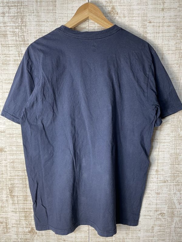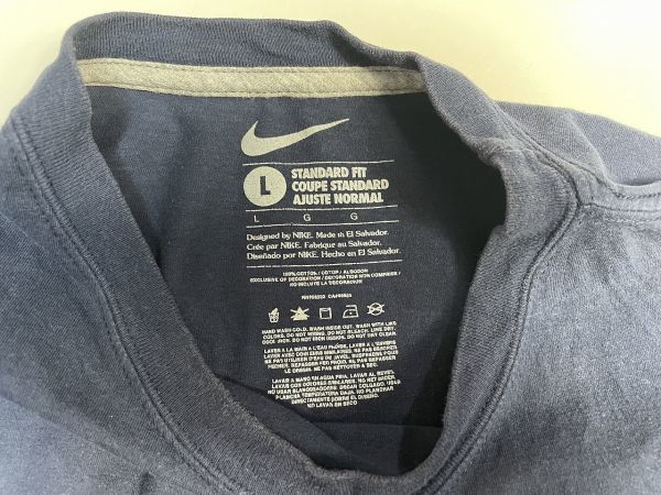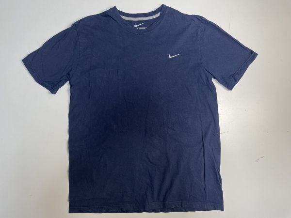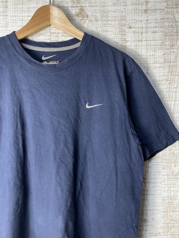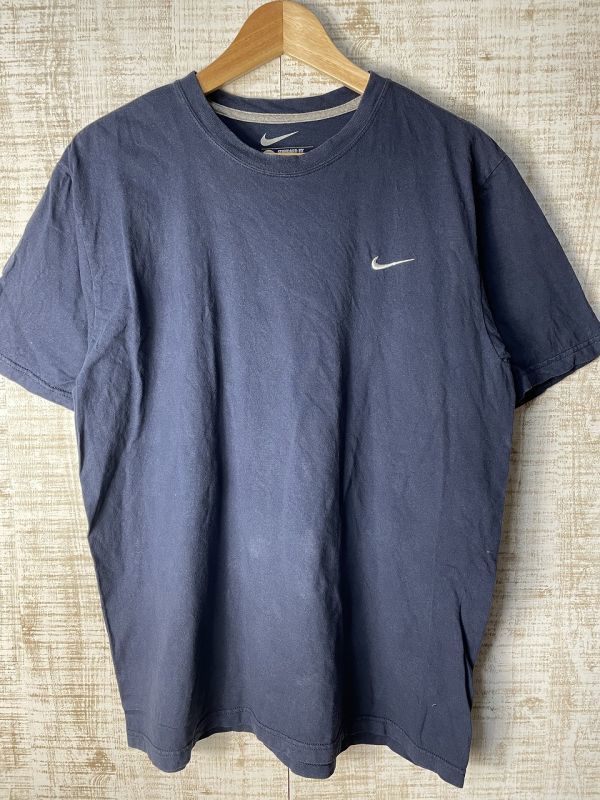 ●US USED NIKE ナイキ ロゴ刺繍 Tシャツ ネイビー紺【L】コットン