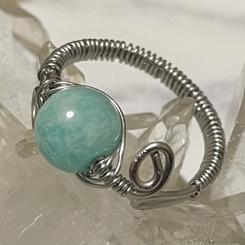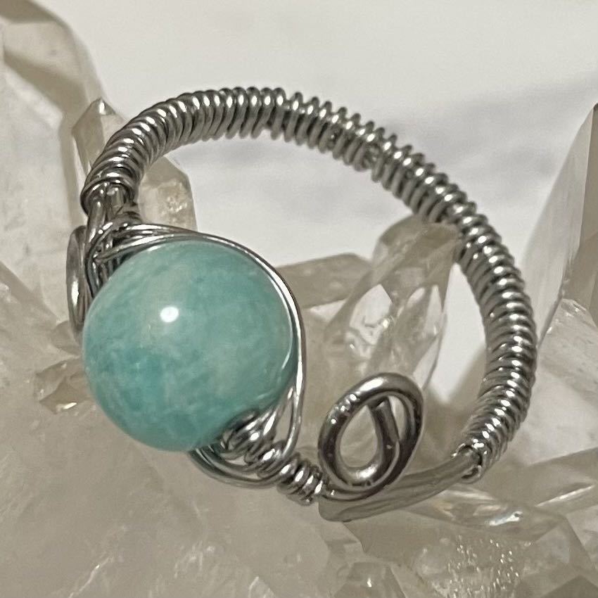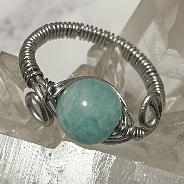 ステンレスワイヤーを使用した天然石ハンドメイドリングです。