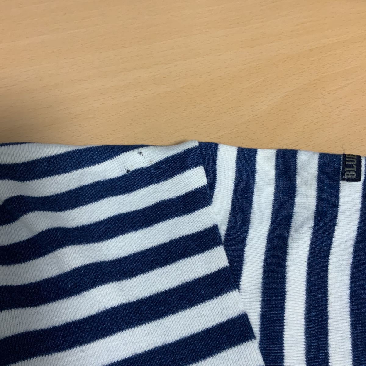 使用状況 : 購入後気に入って着用していましたので全体的に着用感があります。毛羽立ちや色褪せや左肩に穴などありますがまだ着用できます。