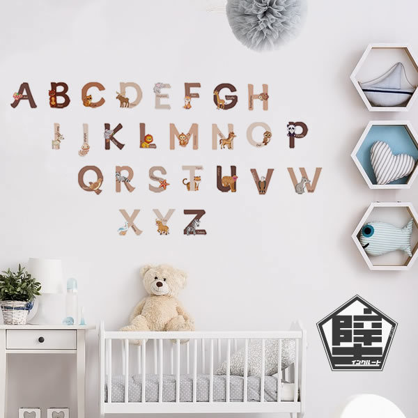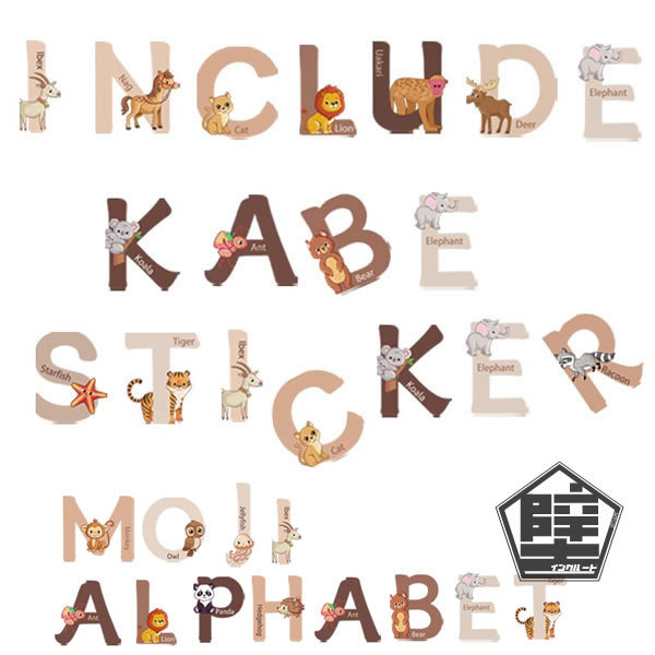 壁ステッカー ウォールステッカー アルファベット 英文字 動物英語 スタディ文字 昆虫 魚 鳥 動物 肉食 草食 ABC