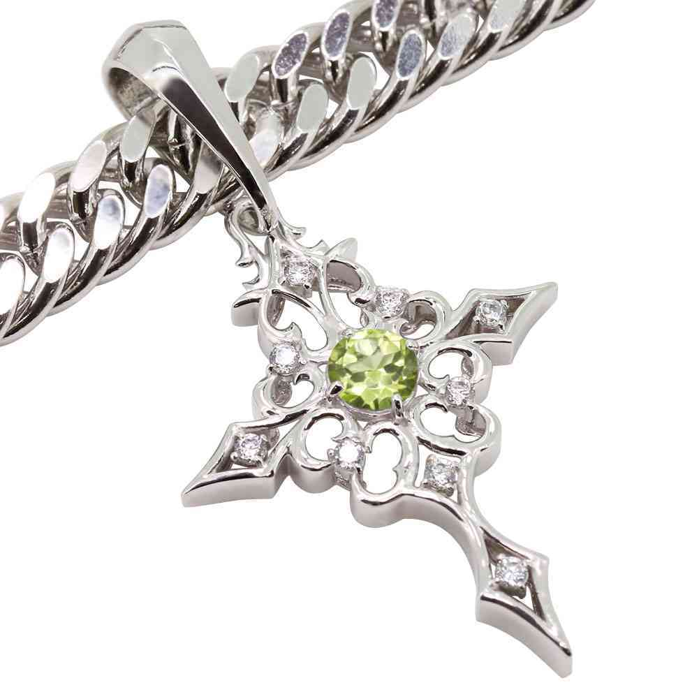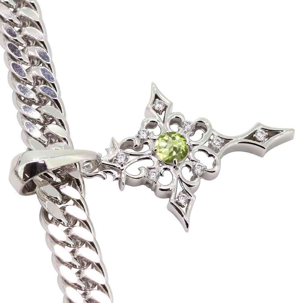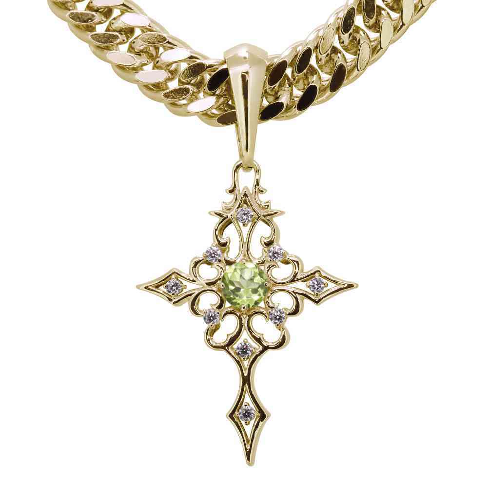 8月誕生石ペリドットを使用した10金製の、クロス(十字架)モチーフの、メンズネックレス(ペンダント)です。