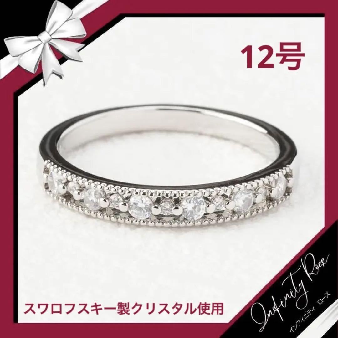 (R036S)12号 シルバー清楚で可愛らしいデザインリング 高価爪留め仕様指輪 スワロフスキー製クリスタル使用