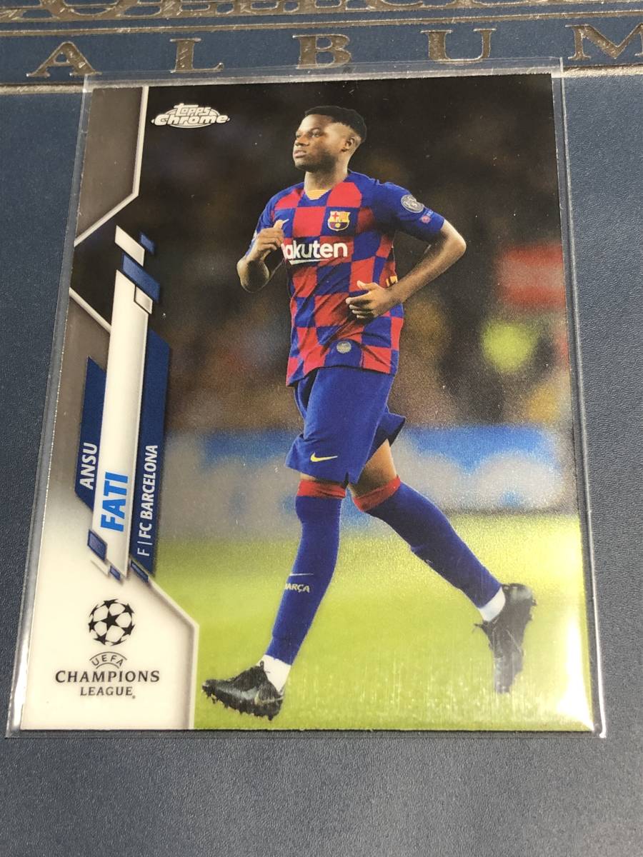 2019-20 Topps Chrome UEFA Champions League Soccer Ansu Fati FC Barcelona Base ルーキーカードです。発送は郵便局からの発送を予定しています。画像をご確認のうえ落札お願いします。初期傷など過度に気にされる方は入札をご遠慮下さい。また新規の方からいたずら入札を受けました。新規で入札する方は必ず質問欄から購入の意思があることを事前に記入した後入札してください。事前に連絡ない場合は必ず入札を取り消させていただきます。よろしくお願いします。 普通郵便の場合、郵便事故の際の補償はありませんのでご了承下さい。その他の希望発送方法(特定記録、簡易書留、レターパックなど)がありましたら落札後取引メッセージよりご連絡ください