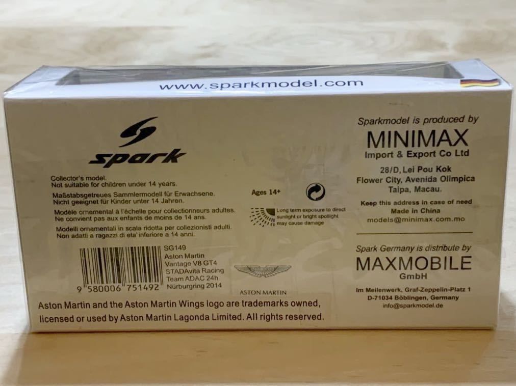 Spark スパーク 1/43 アストン マーティン ヴァンテ―ジ Aston Martin Vantage V8 STADAvita レーシング ニュルブルクリンク24時間 ニュル24時間