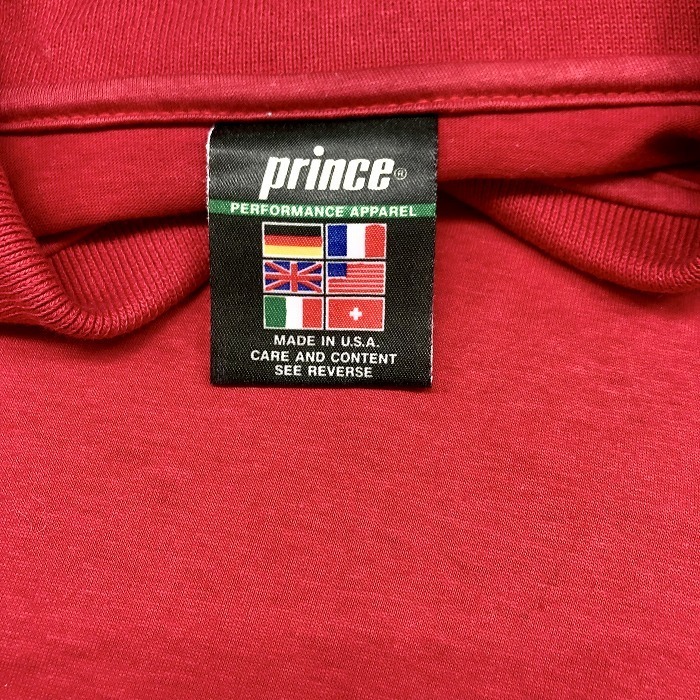 | 商品タイトル | PRINCE プリンス M メンズ 男性 ポロシャツ カットソー Tシャツ生地 ロゴ刺繍 インポート古着 半袖 綿100% コットン ヘザーレッド 杢赤系 |