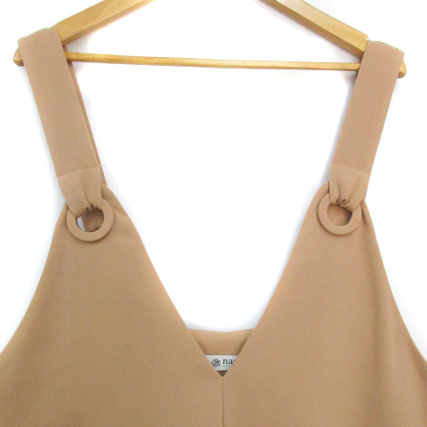 ナノユニバース nano universe オーバーオール サロペット ワイドパンツ ロング丈 Vネック 無地 F ベージュ /FF4 レディース