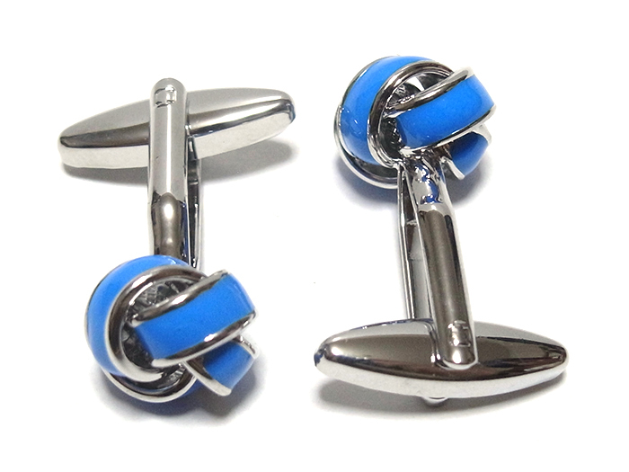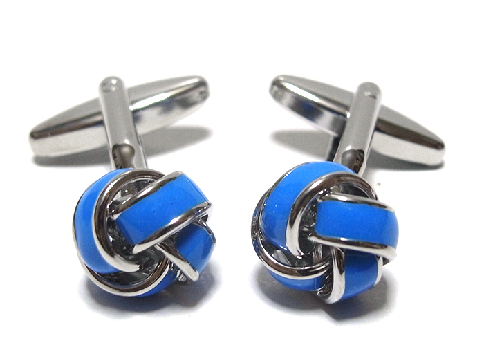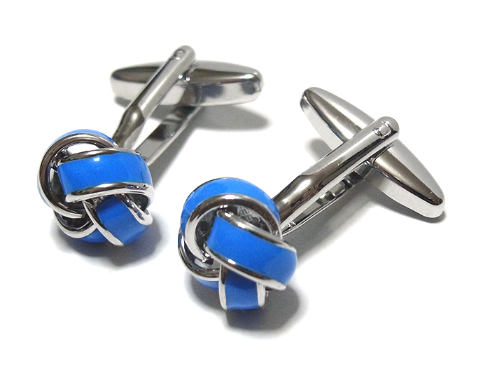 【カフス ボタン/カフリンクス】玉結び 組み紐 くみひも 手毬 青色 ブルー×シルバー cuf-0526-2