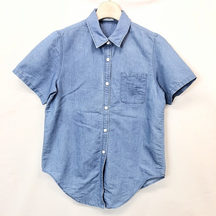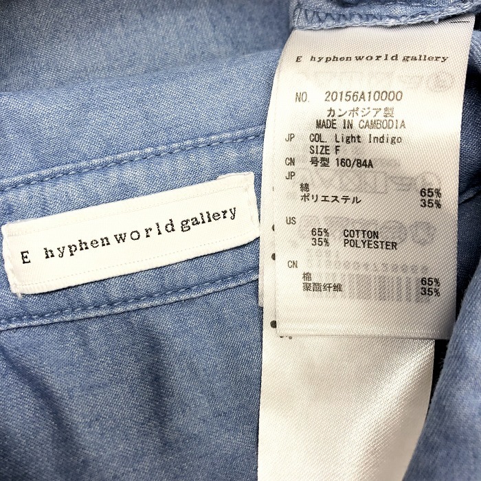 | 商品タイトル | E hyphen world gallery イーハイフンワールドギャラリー F レディース シャツ 無地 フロント長め 半袖 胸ポケット 綿×ポリ ブルー 青 |